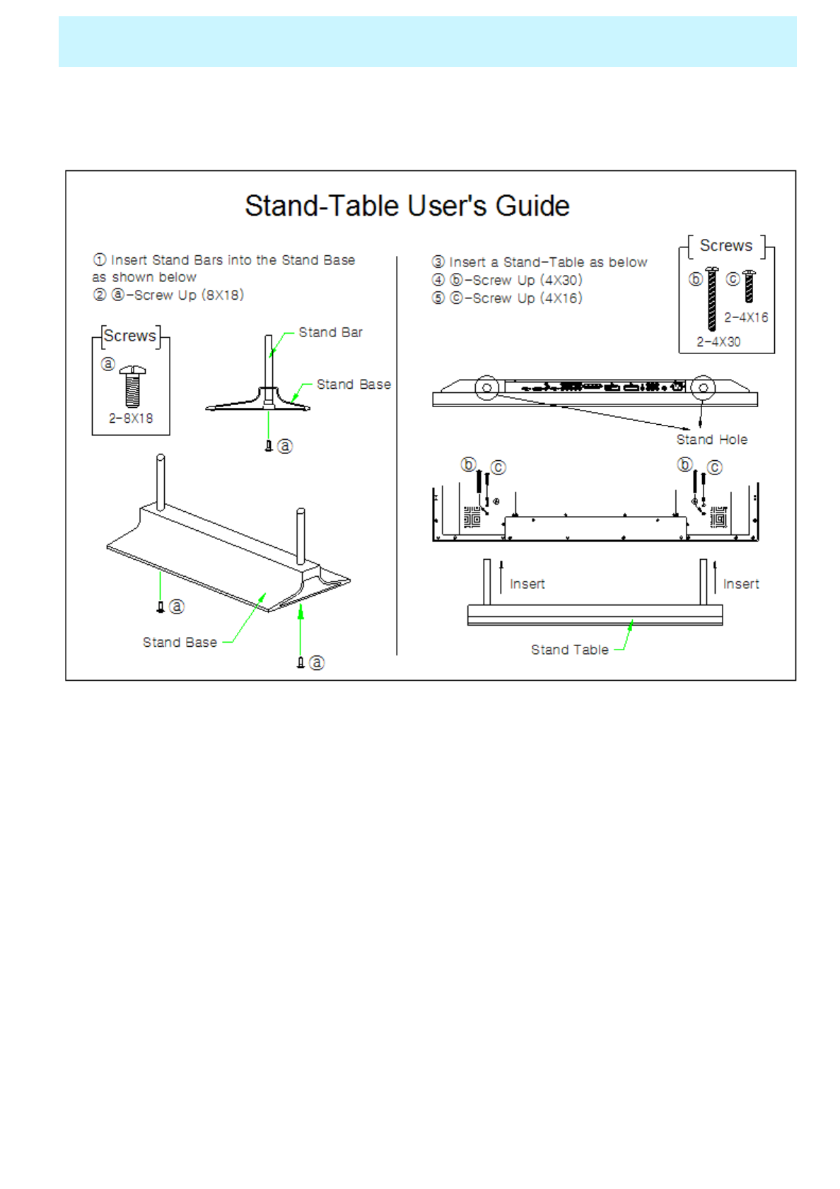 Table Stand Installation (optional) …………………………………………………...