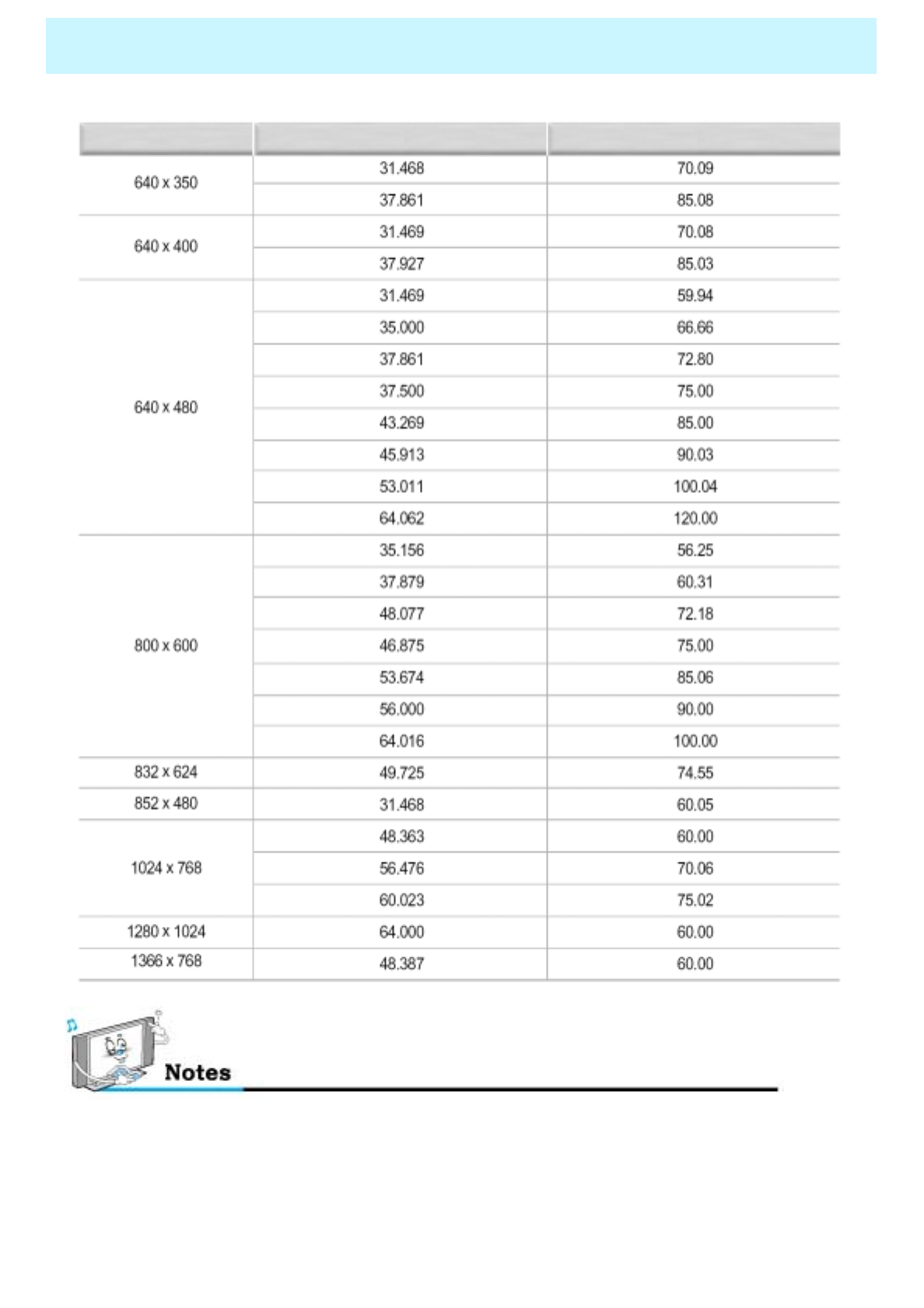 Displayable Monitor Specification ……………………………………………………....