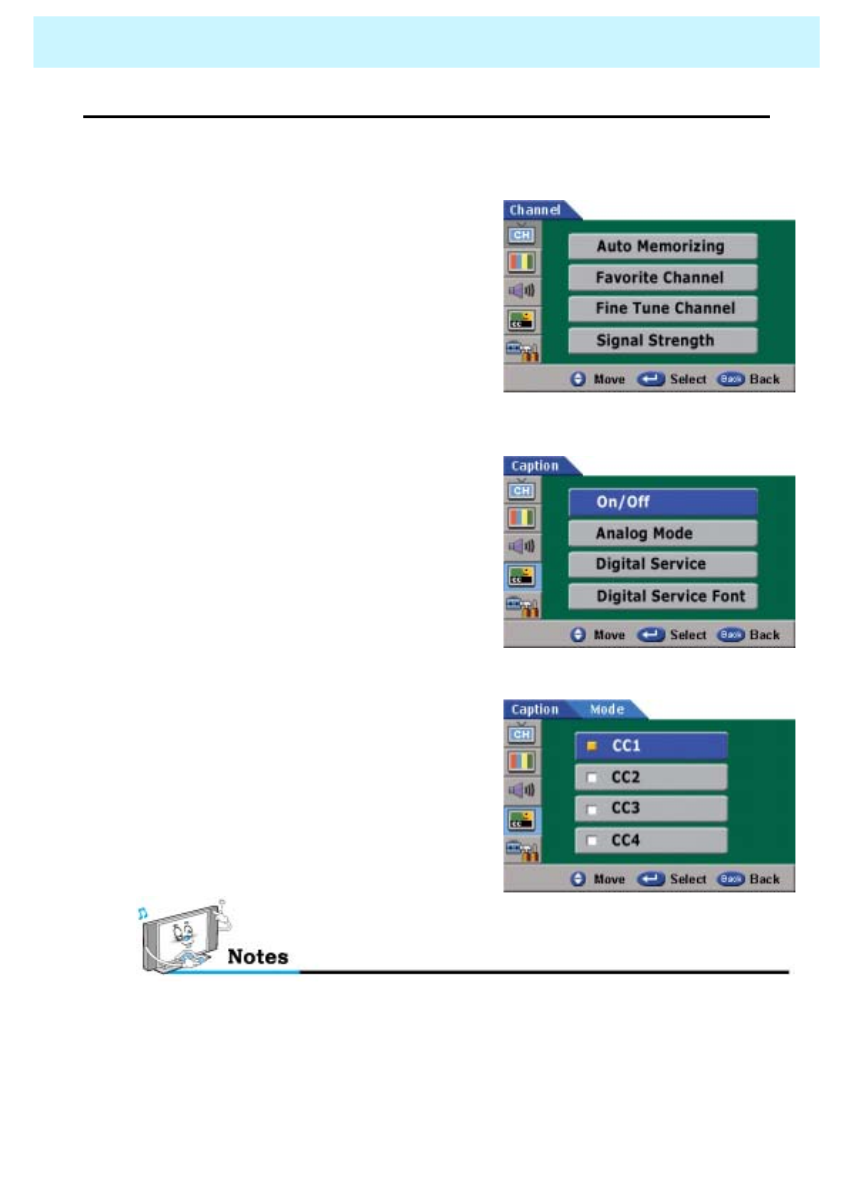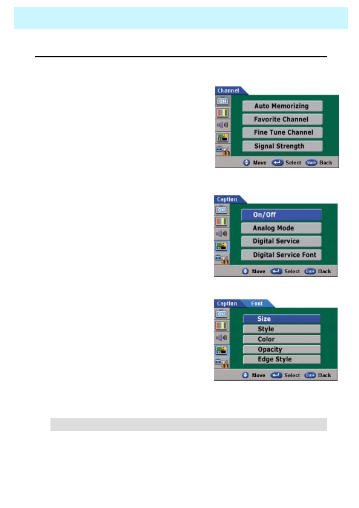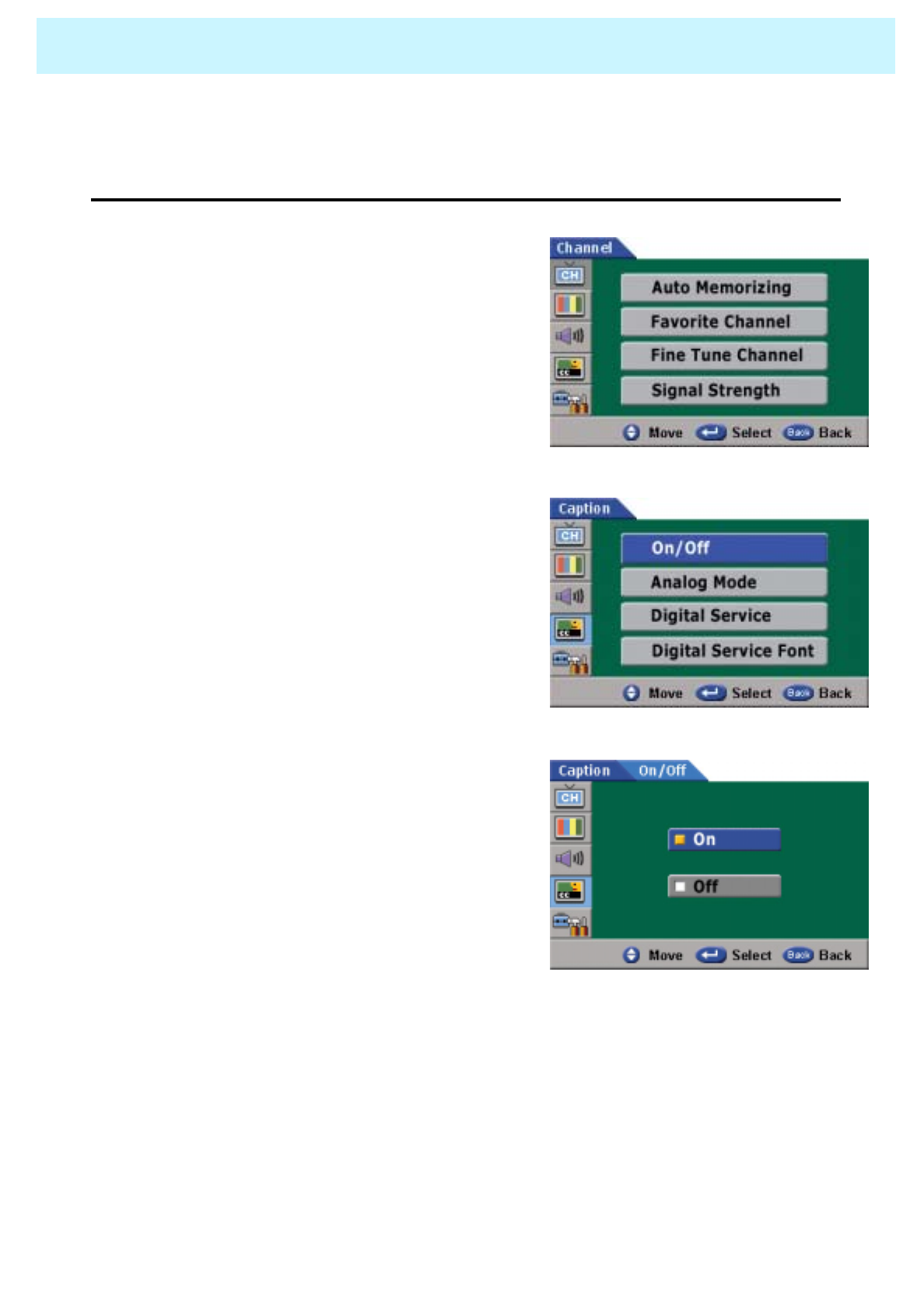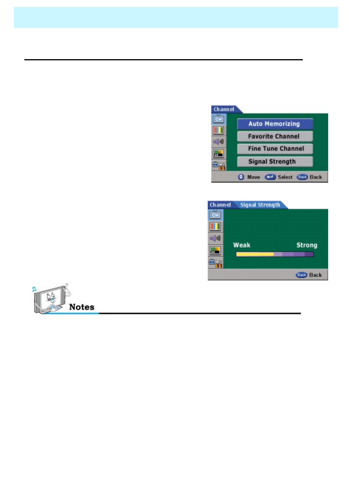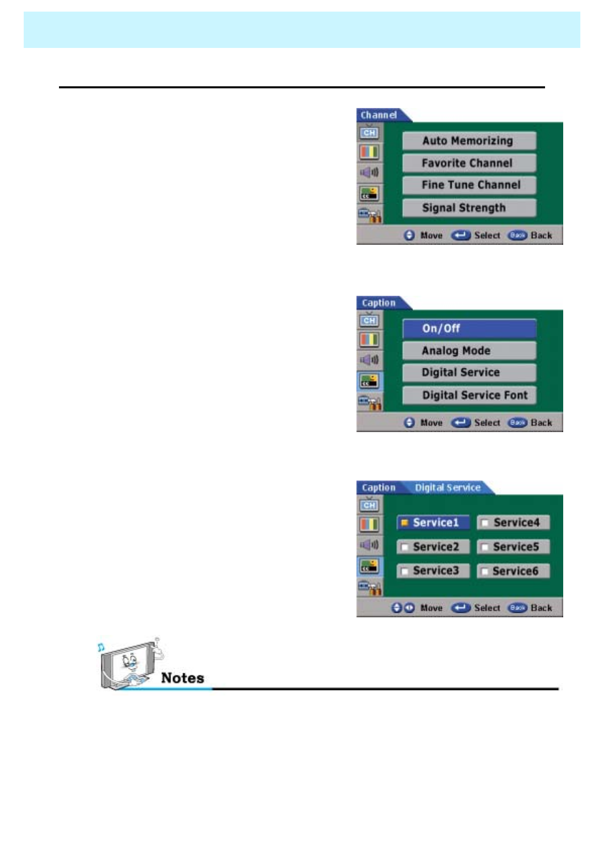 Check the digital signal strength and input antenna.Digital broadcasting screen