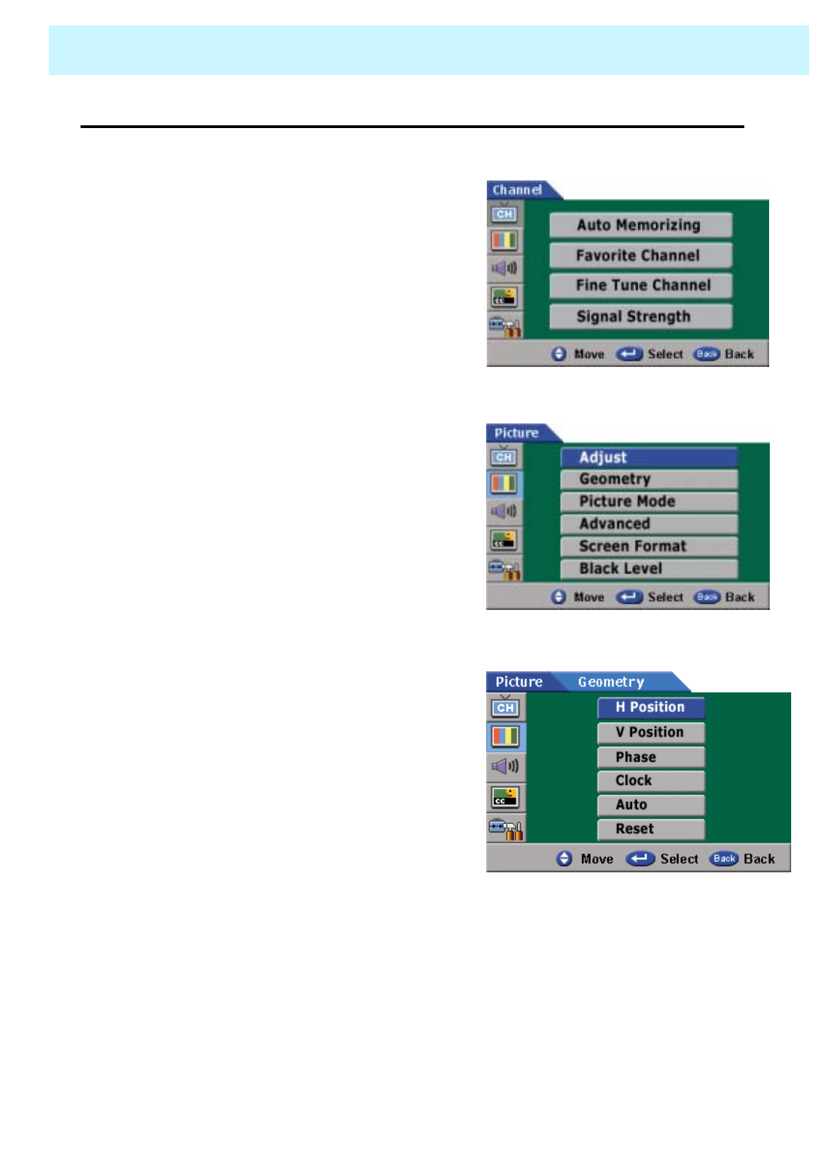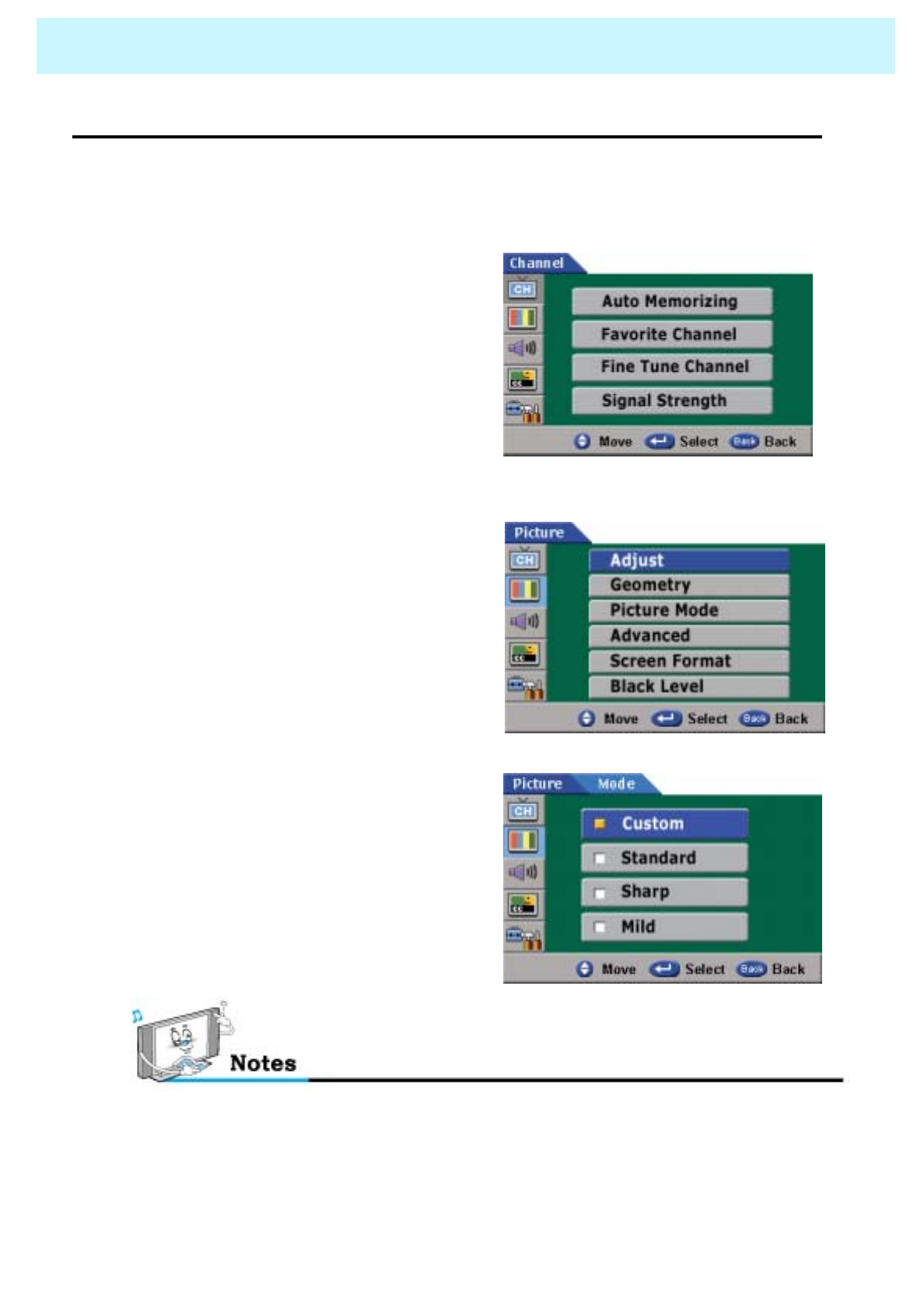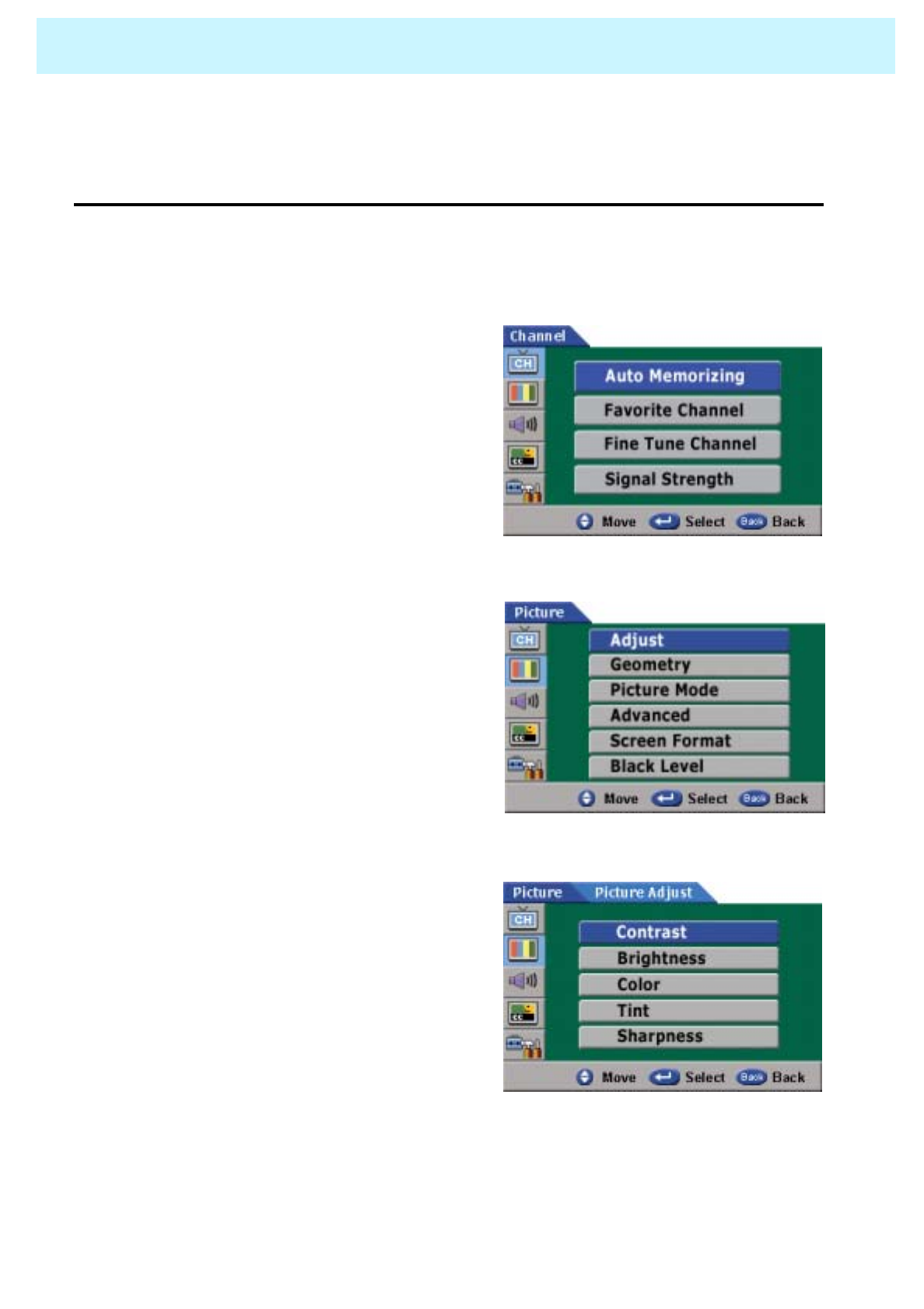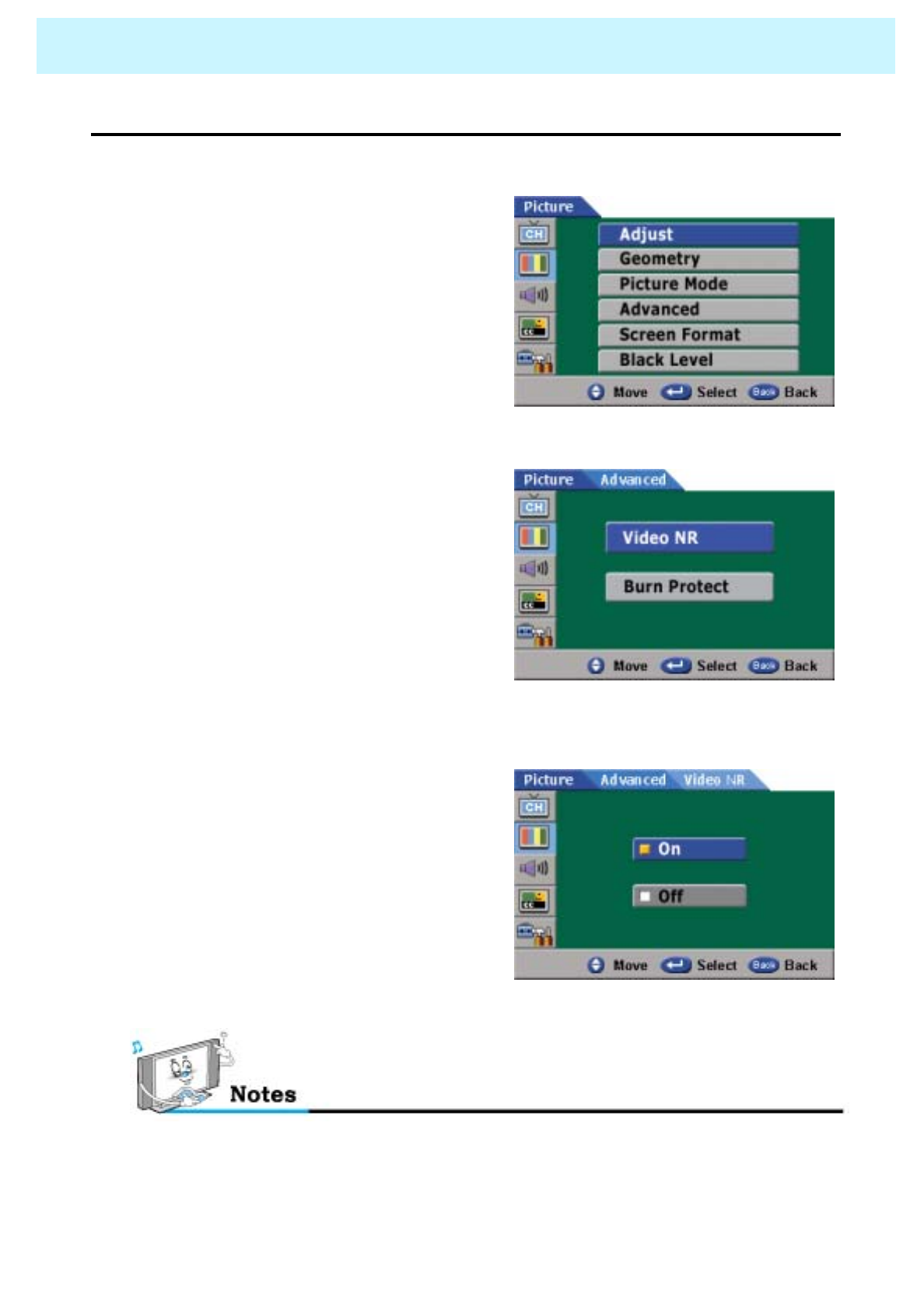 Select Color in the Picture and press VOLUME( X) button.