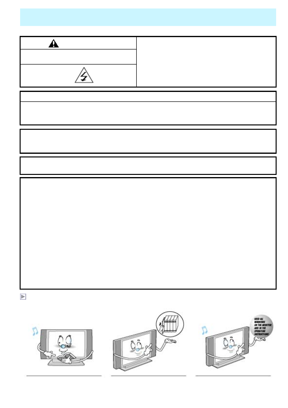 Always be careful when using your Monitor. To reduce the risk of fire, electrical shock, and other