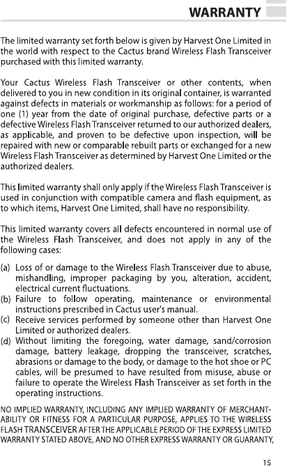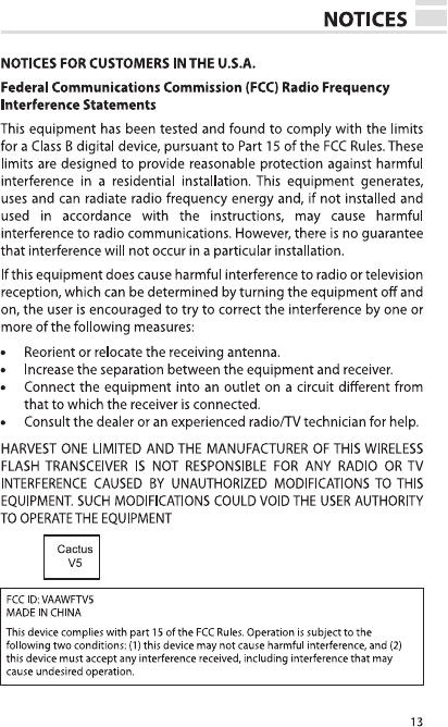 Harvest One WFTV5 WIRELESS FLASH TRANSCEIVER User Manual p1