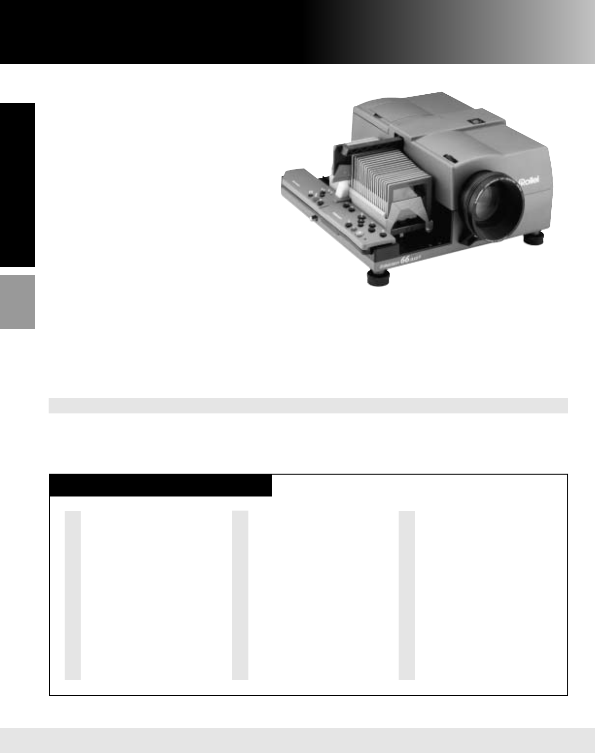 With power cord, front protective cover and projector lamp. (Lens and rotary slide magazine must be purchased separately). Can be
