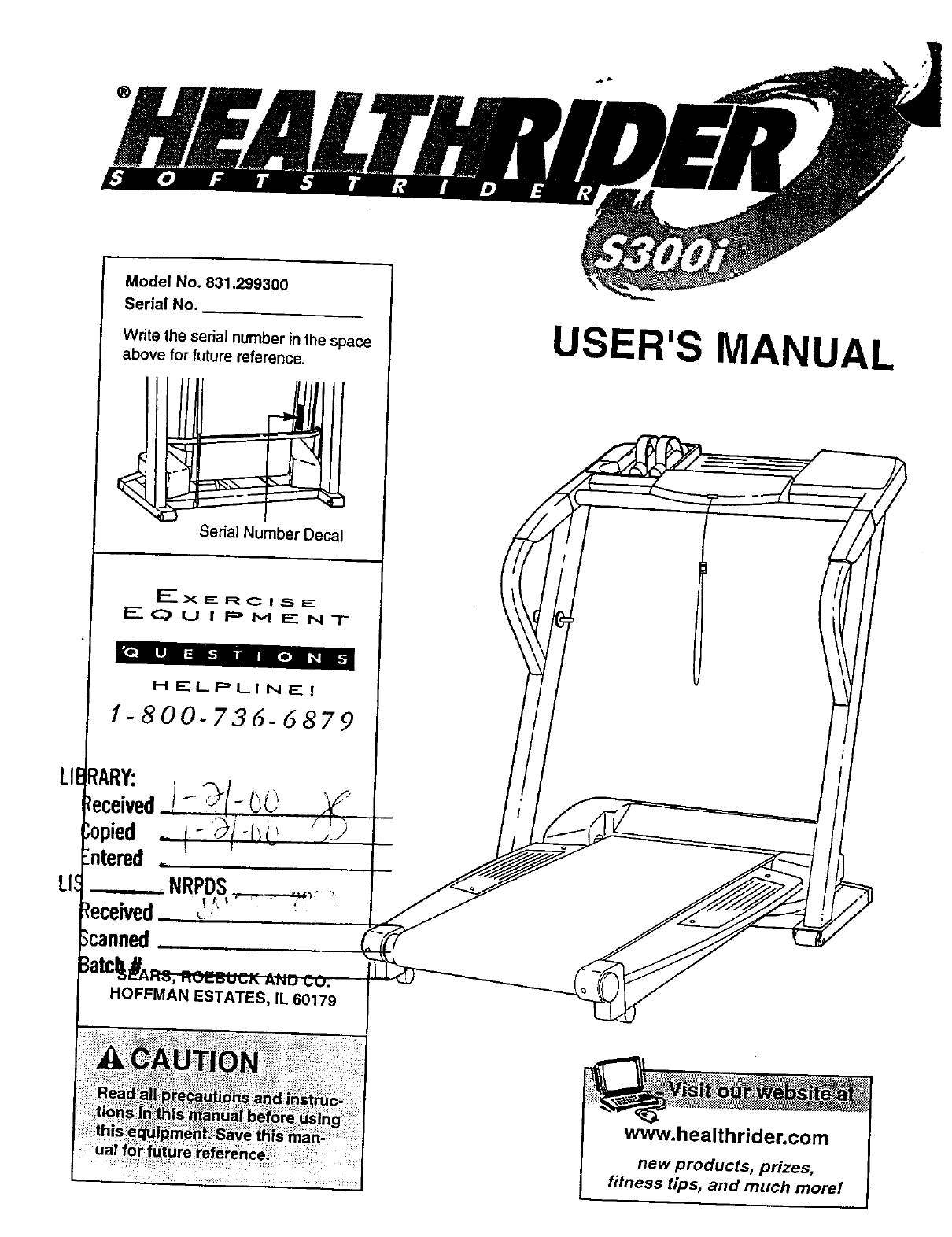 User Manual: Healthrider 831299300 831299300 HEALTHRIDER HEALTHRIDER S300I - Manuals and Guides View the owners manual for your HEALTHRIDER HEALTHRIDER S300I #831299300. Home:Fitness Equipment Parts:Health Rider Parts:Health Rider HEALTHRIDER S300I Manual