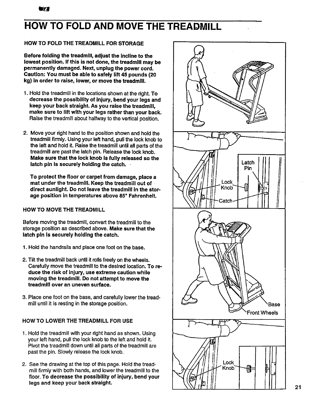 HOW TO FOLD AND MOVE THE TREADMILL .................................................. 21