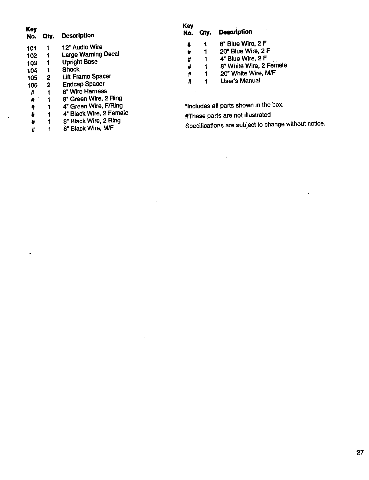 Note: An EXPLODED DRAWING is attached in the center of this manual. Please save the EXPLODED DRAWING