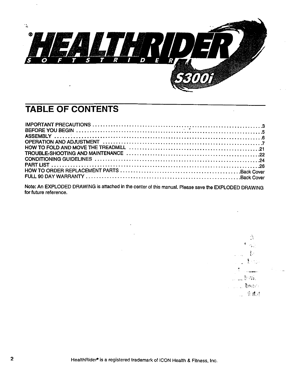 2HealthRider ° is a registered trademark of ICON Health & Fitness, Inc.