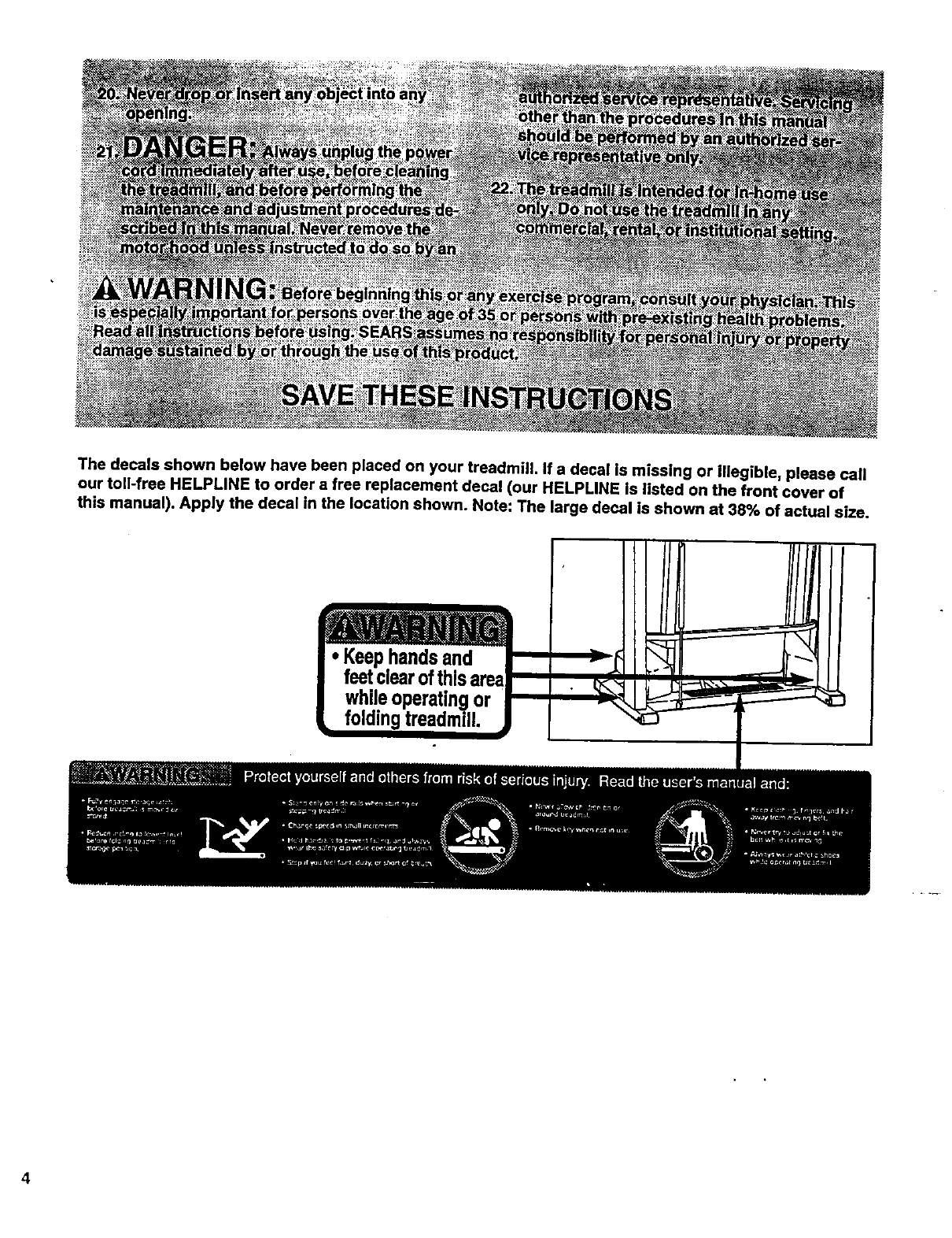 The decals shown below have been placed on your treadmill. If a decal is missing or illegible, please call