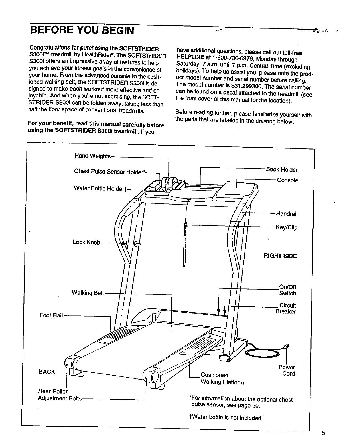 using the SOFTSTRIDER S3O0i treadmill. If you
