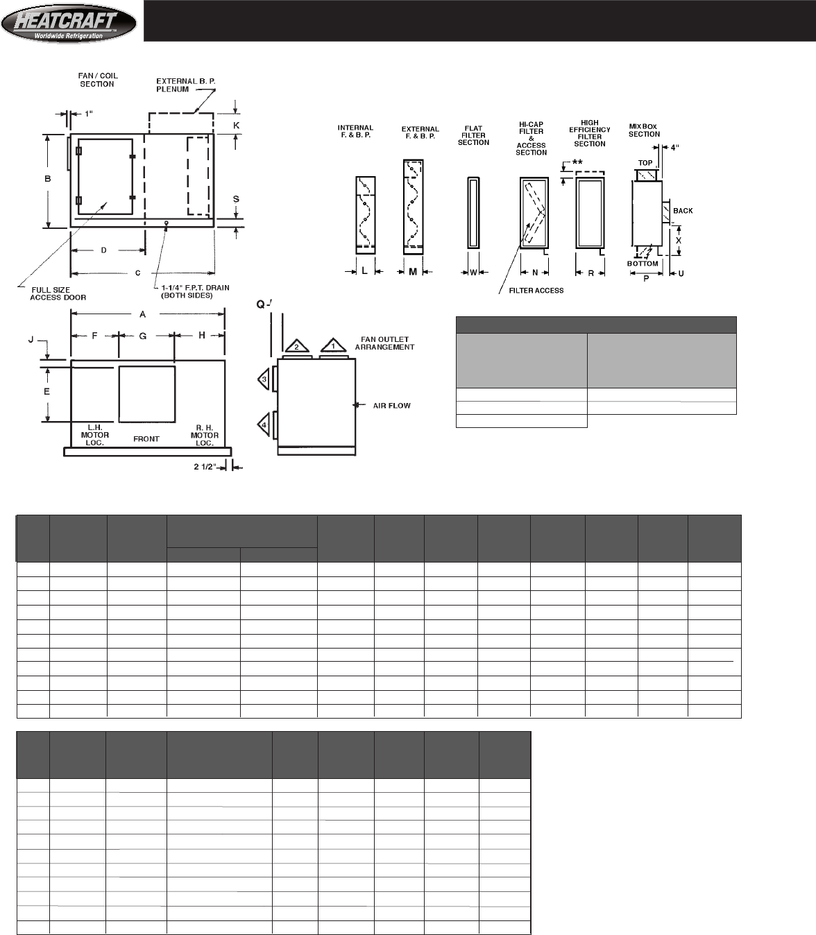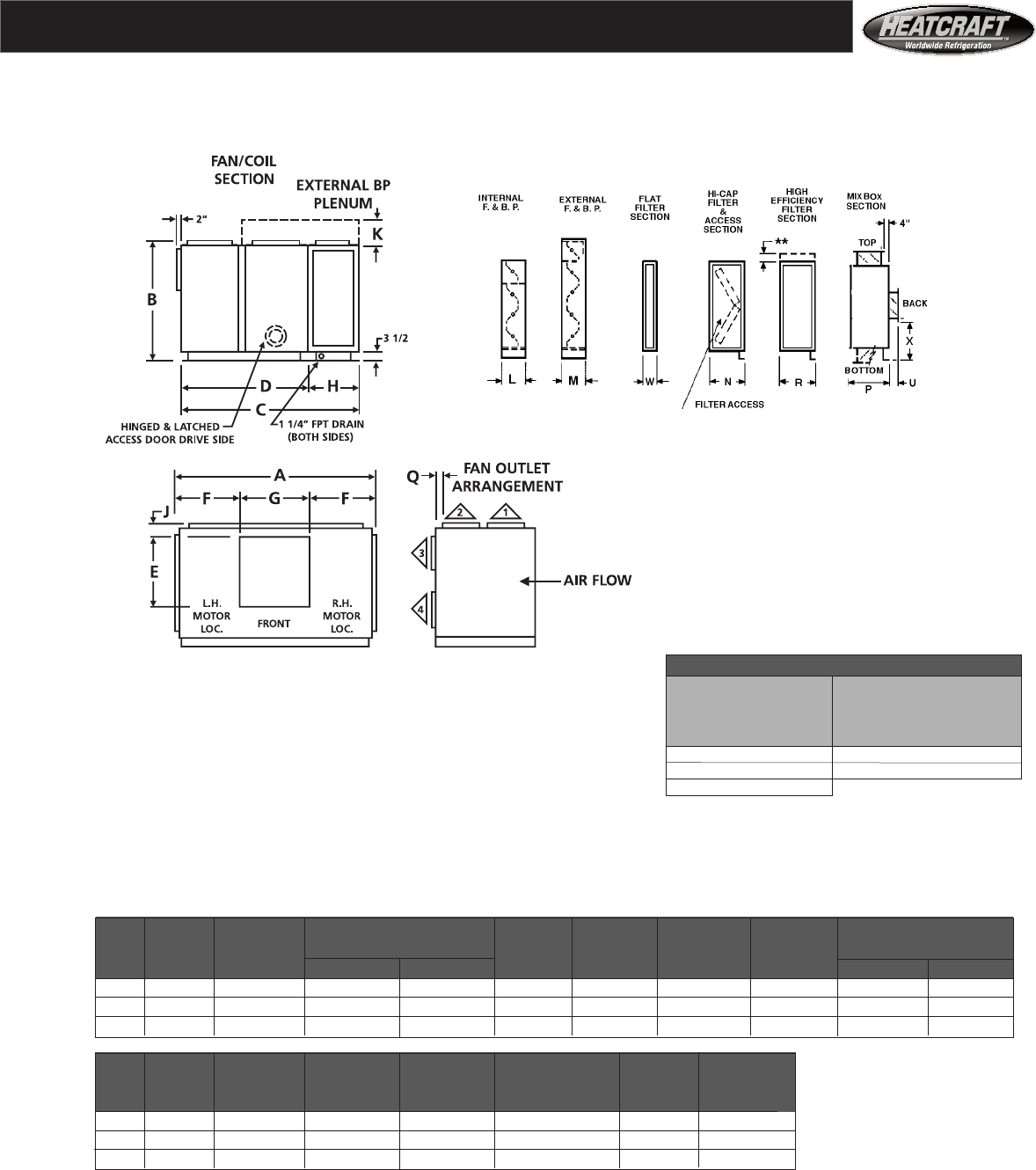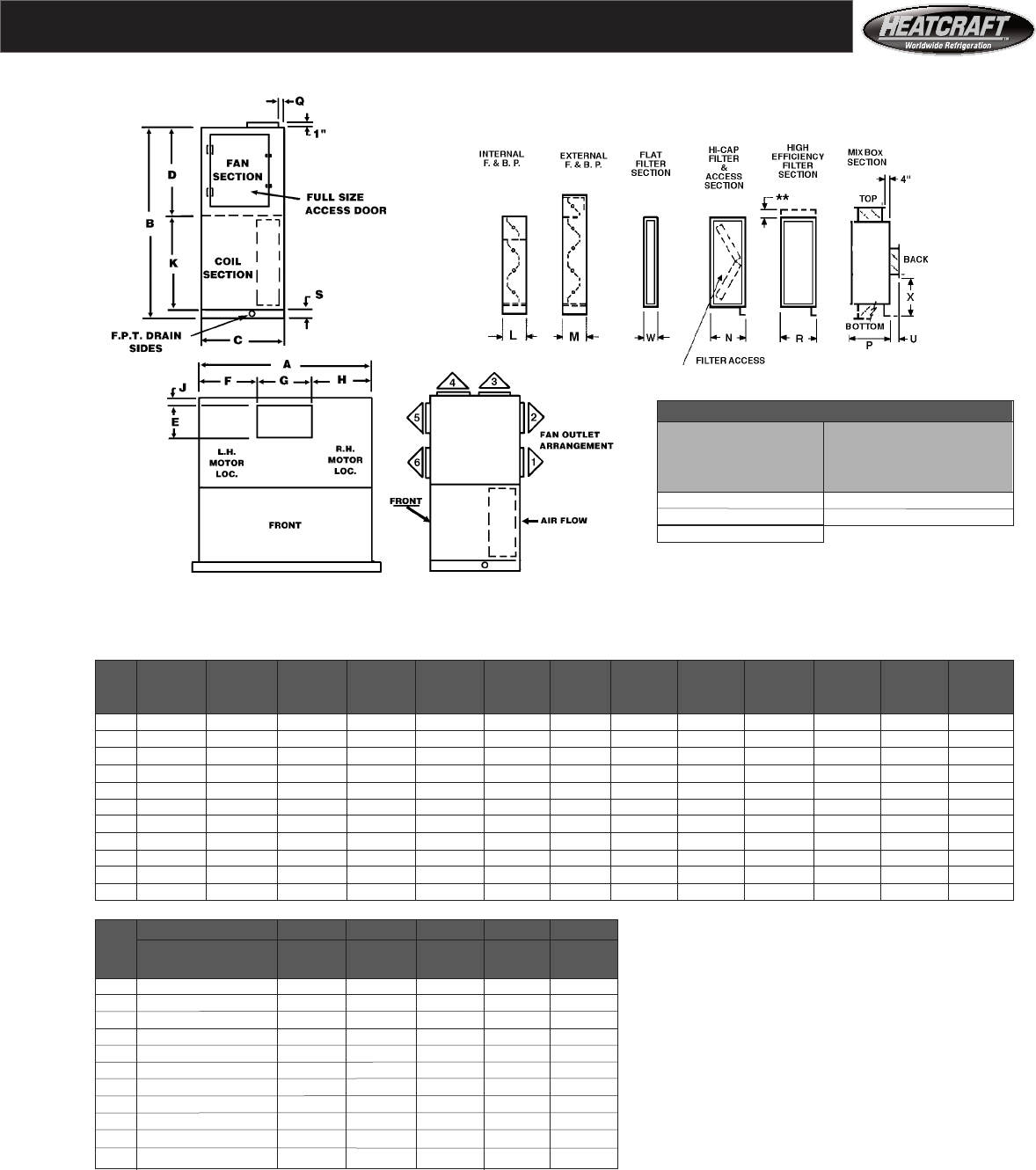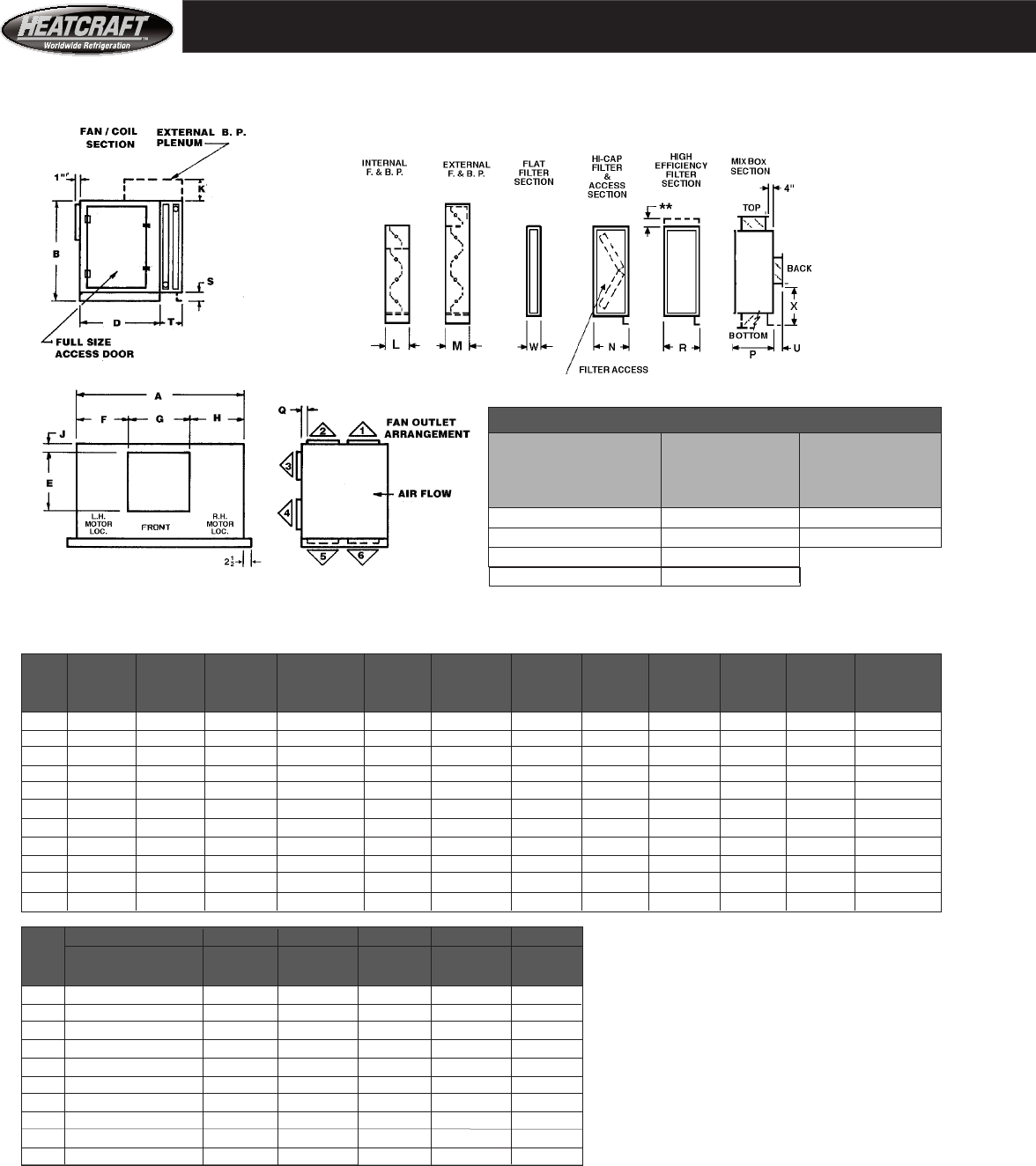 requirements. The standard heating unit includes 1 or 2 row heating sections.