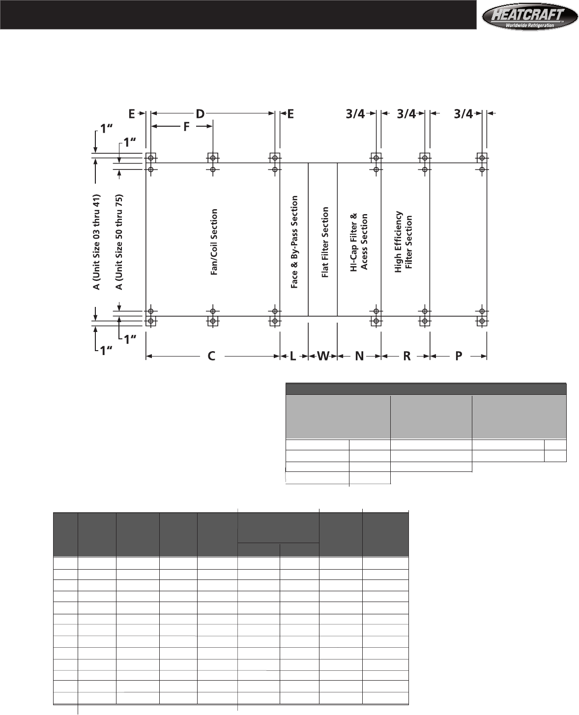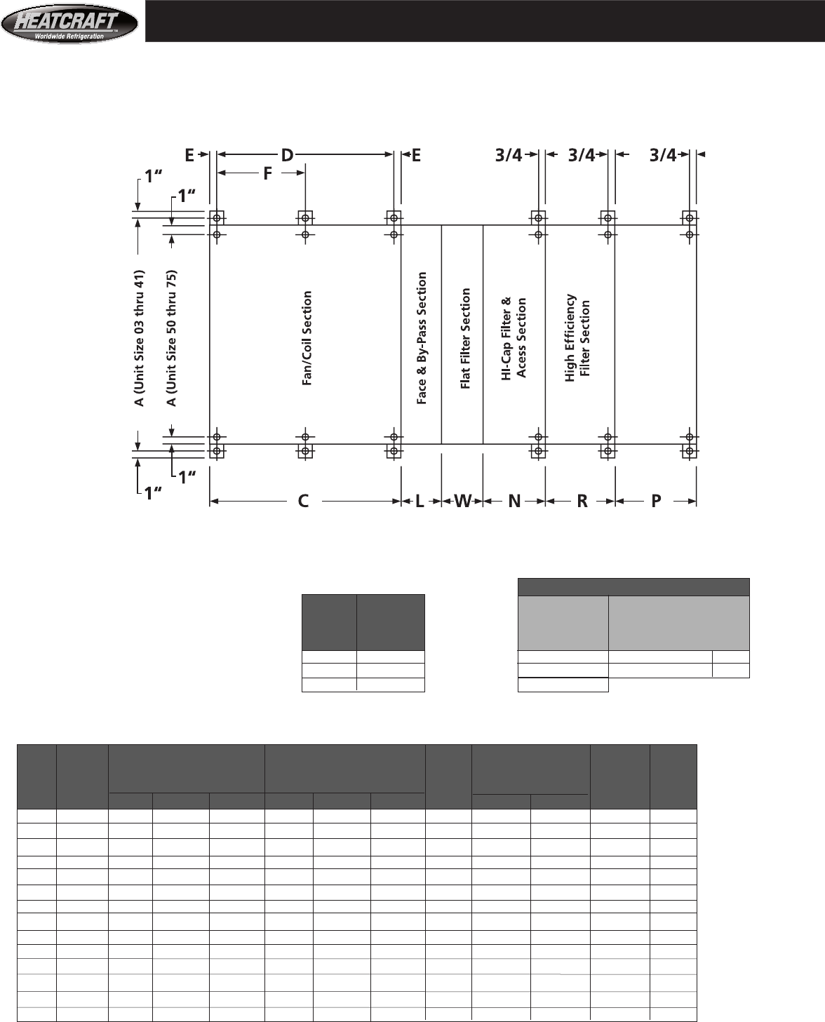 Split fan & coil sections (HCS, HCL, & HD only) A A A A A A A S S S S S S S