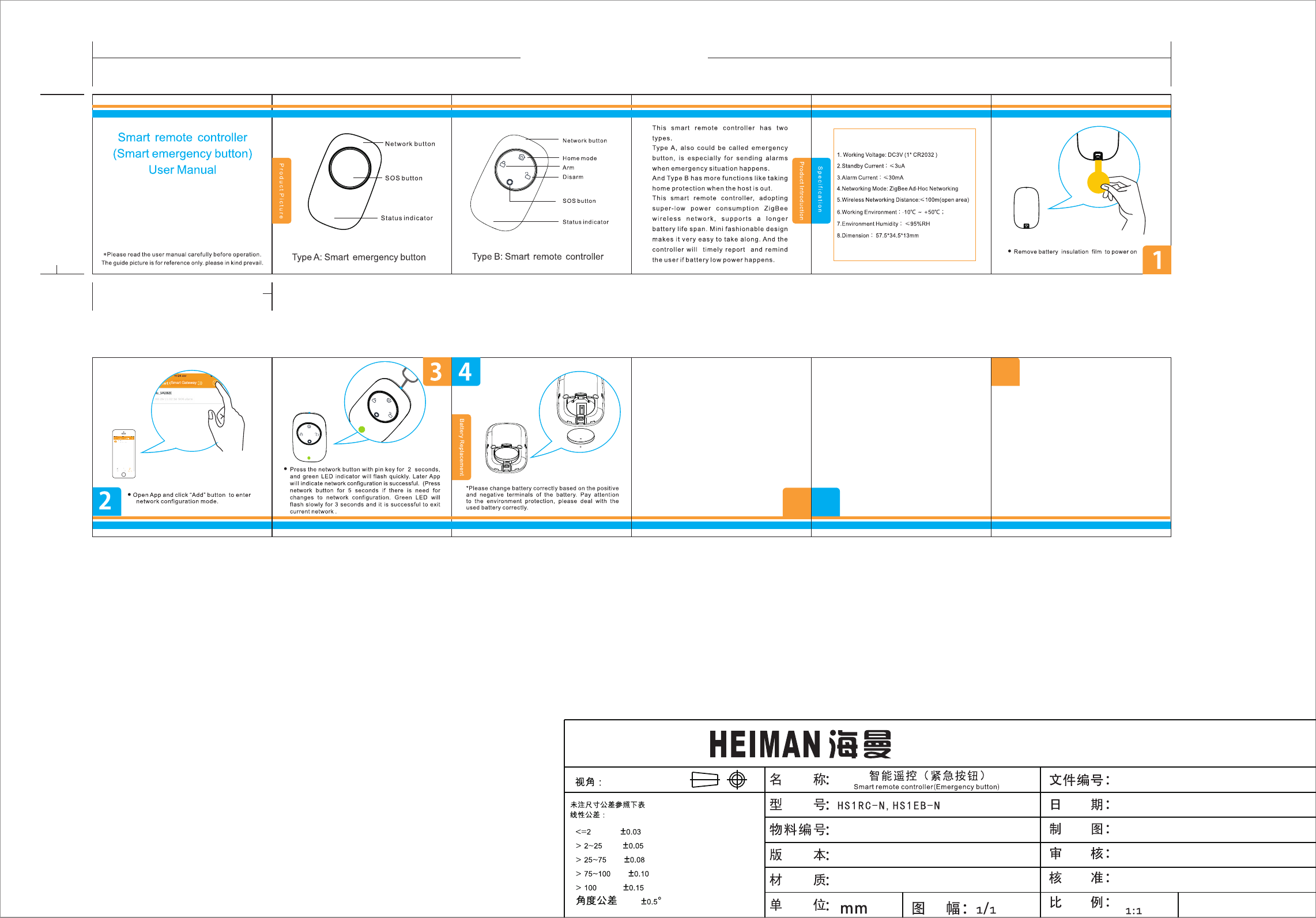 Heiman Technology HS1EB Smart Remote Controller/Smart Emergency Button User Manual