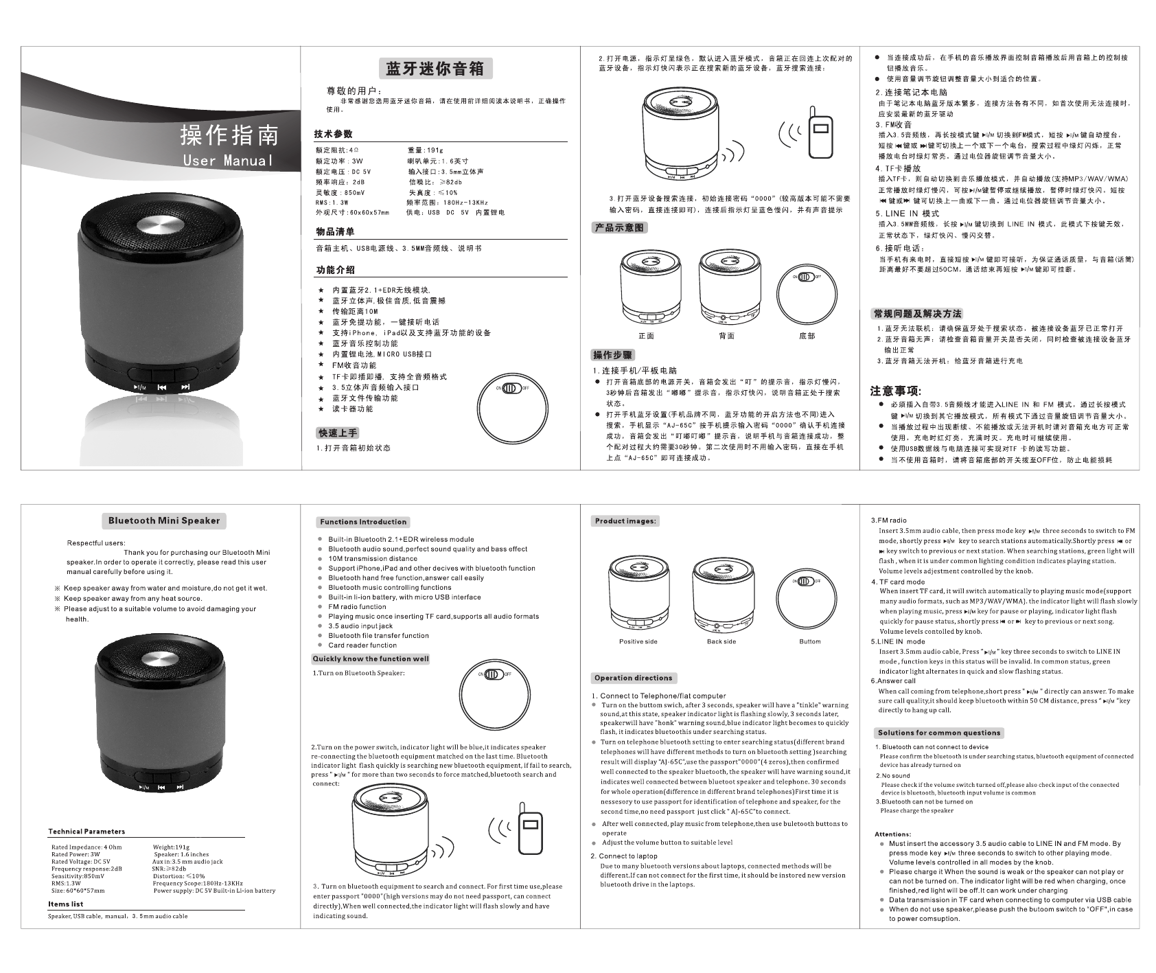 Hejiaxing Electronics AJ-65C BLUETOOTH SPEAKER User Manual AJ 65C