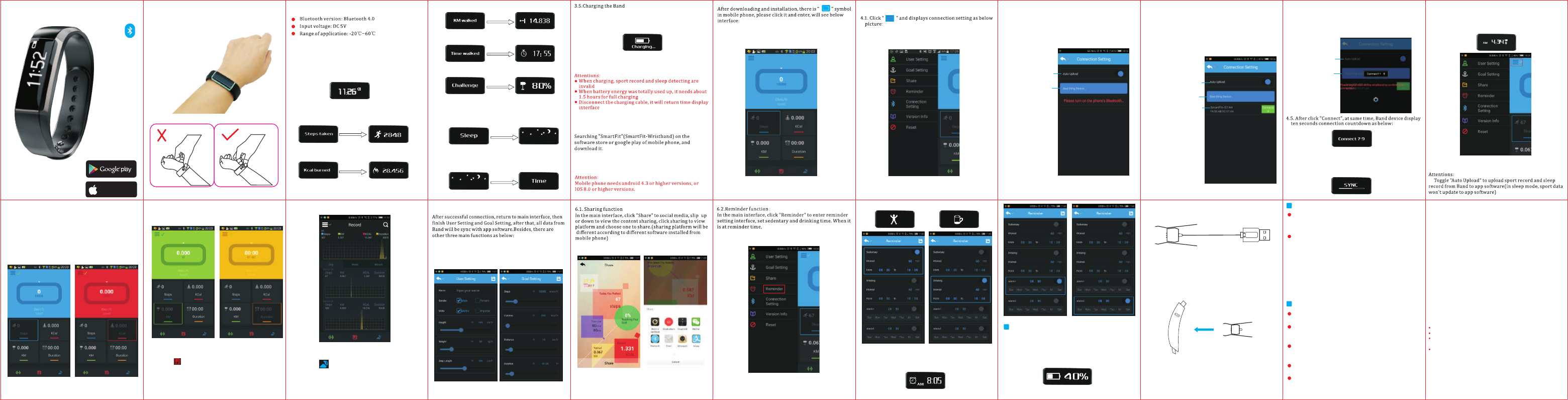 Use the supplied charger to charge smart wristband. Once