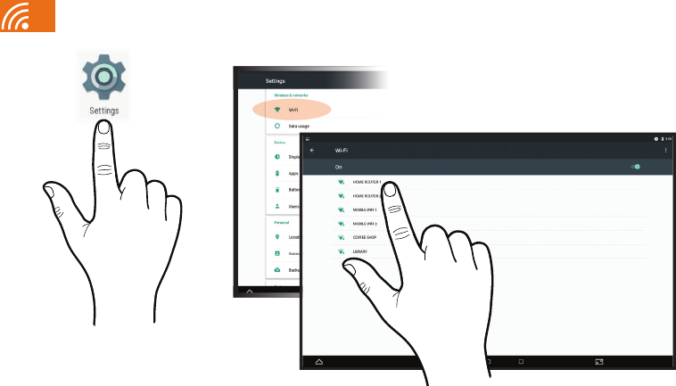Tap on the Settings icon to go to the Settings screen. Select “WiFi”, and