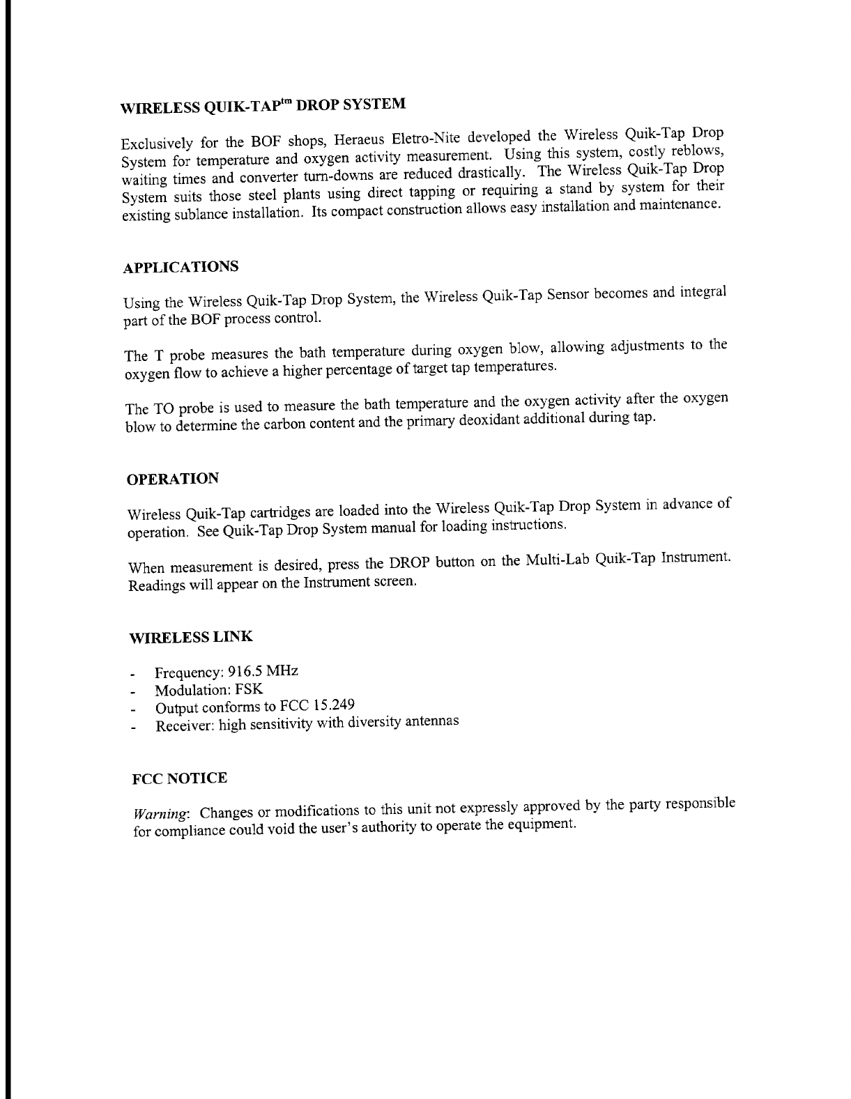 Heraeus Electro Nite HER001 Wireless Quik-Tap Timesaver Sensor User Manual