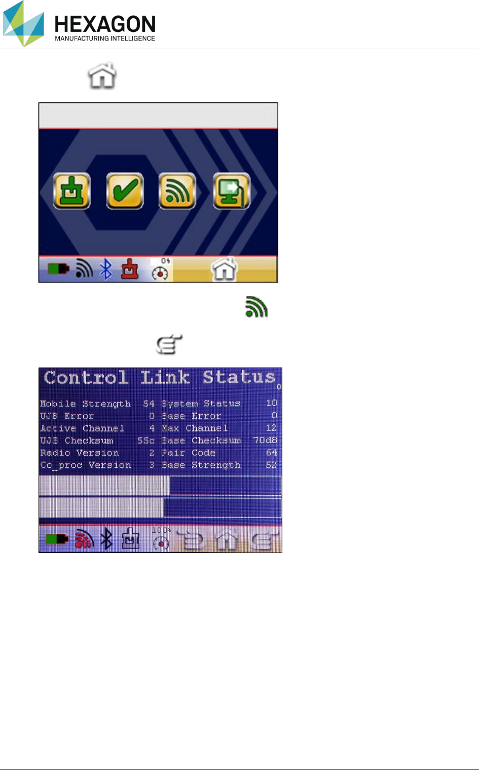 4. Scroll the pages with the icon until the CONTROL LINK STATUS page is shown.