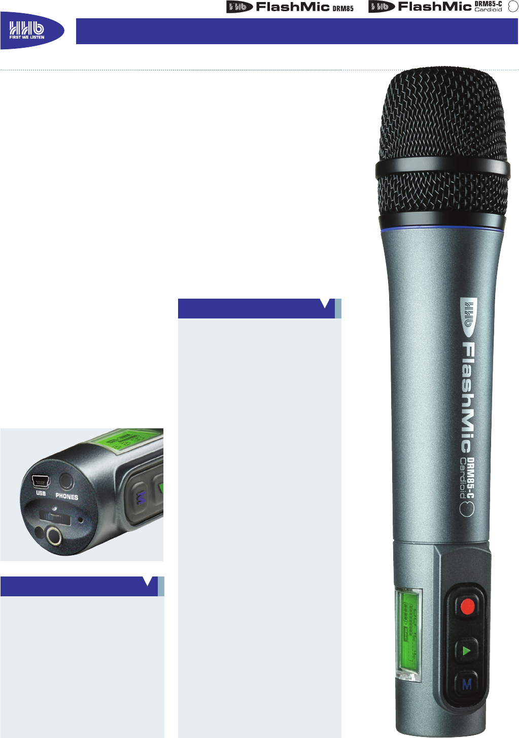 • mp3 compatible via FlashMic Manager