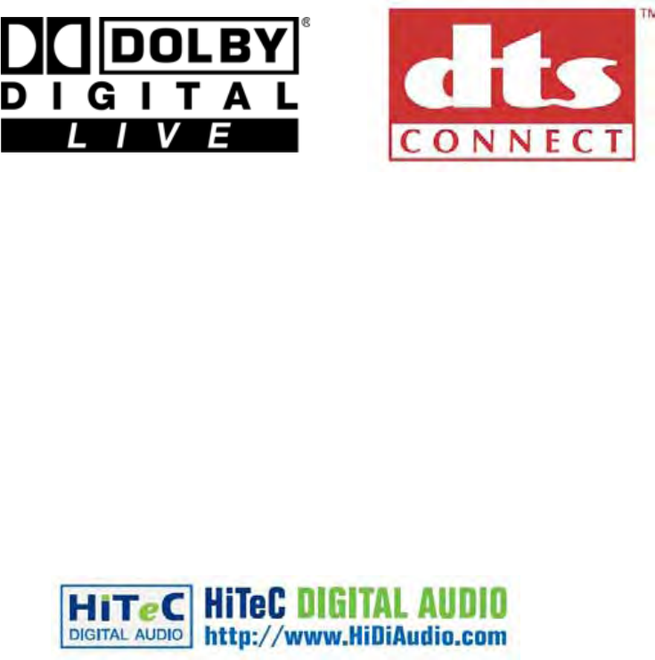 Digital Live are trademarks of Dolby Laboratories. DTS CONNECT , DTS