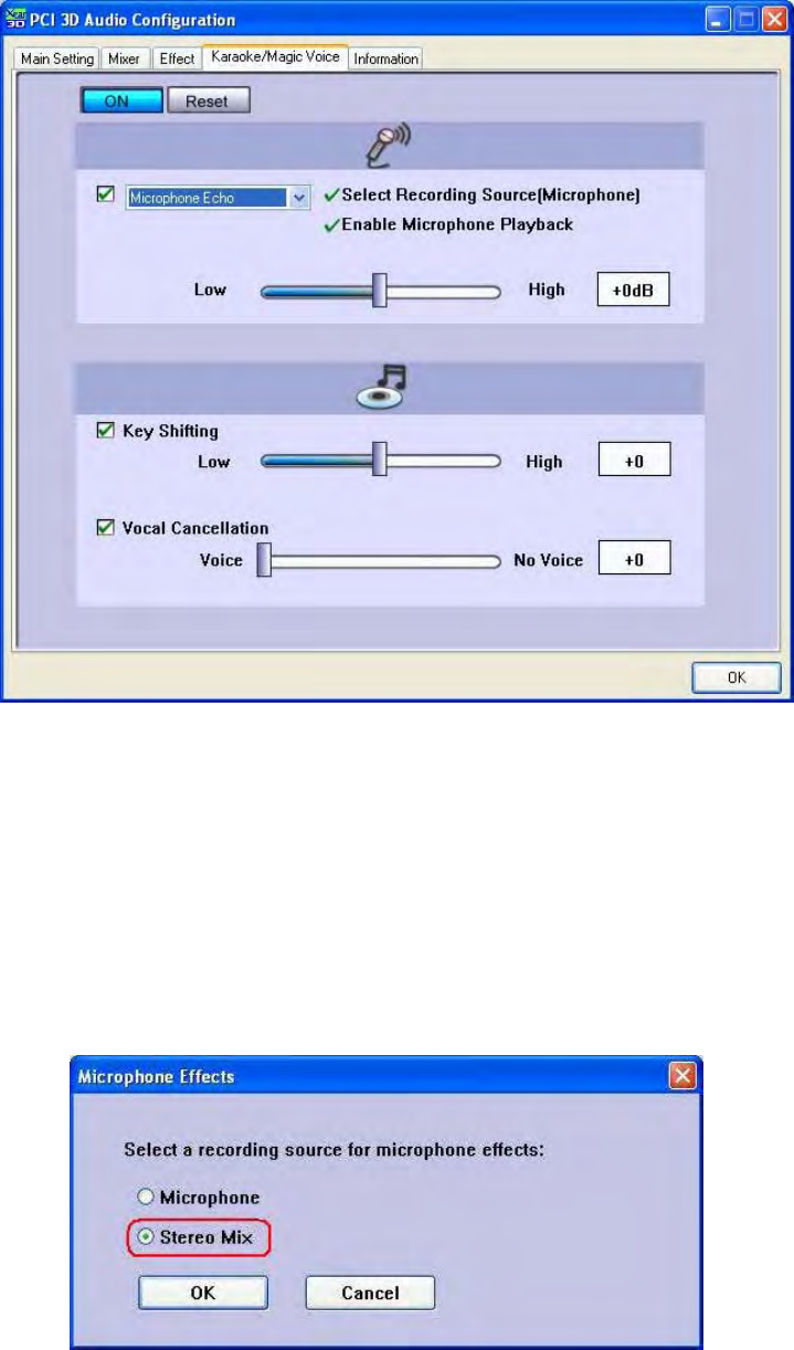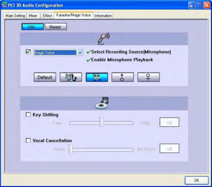 STEP2:Turnonthe"MagicVoice"onKaraoke/MagicVoicetabonPCI3DAudio