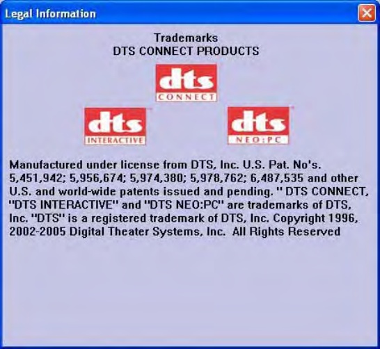 of DTS, Inc. DTS is a registered trademark of DTS, Inc. Copyright 1996, 2002-2005