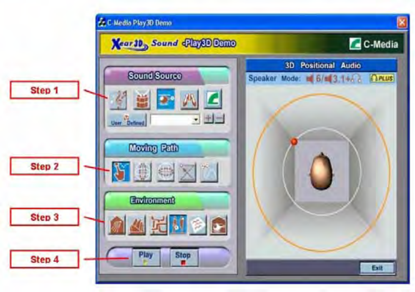 C-Media also provides an interesting Play3D demo program as below. After installing