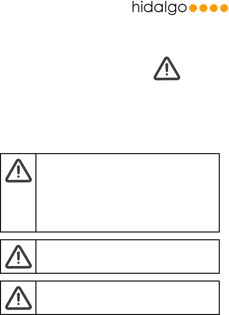 • USE ONLY THE HIDALGO PROVIDED BATTERY CHARGER AND BELT ASSEMBLIES WITH