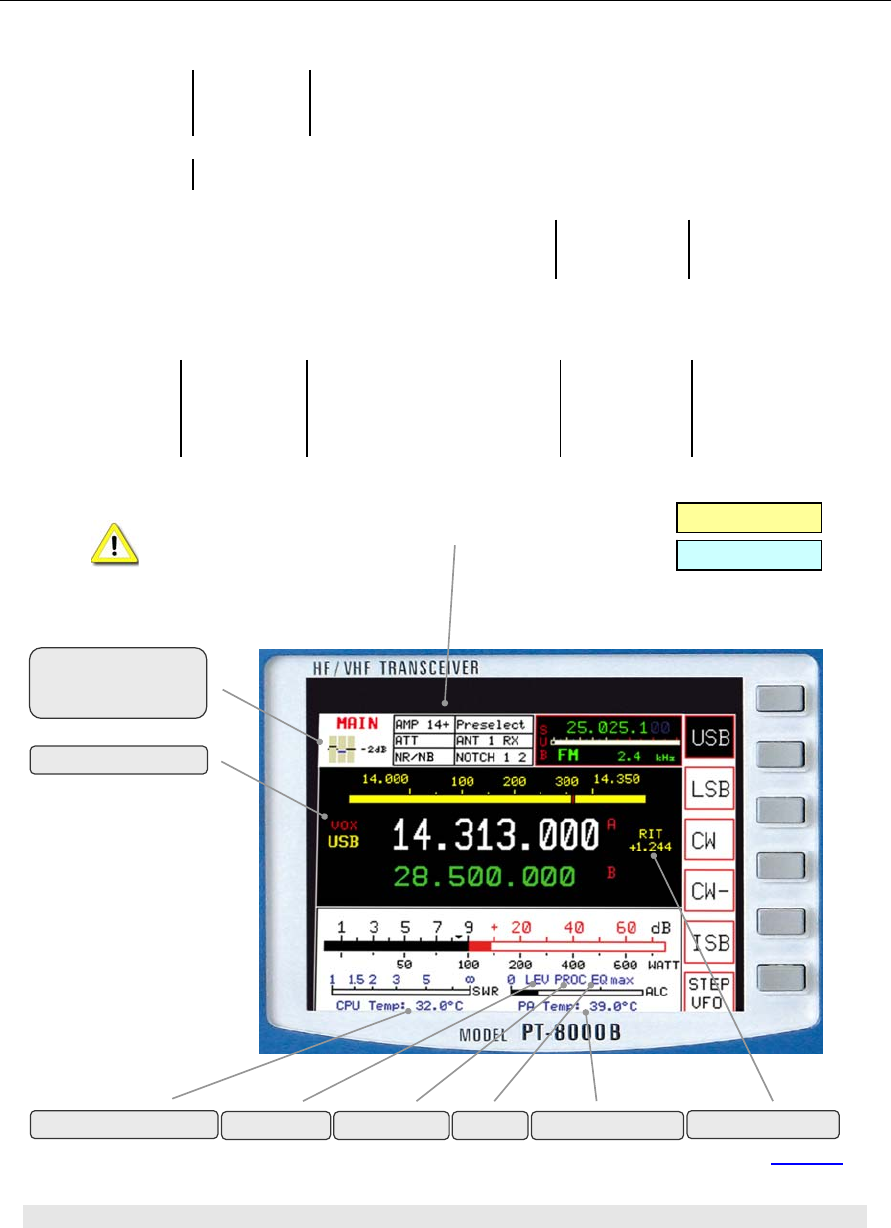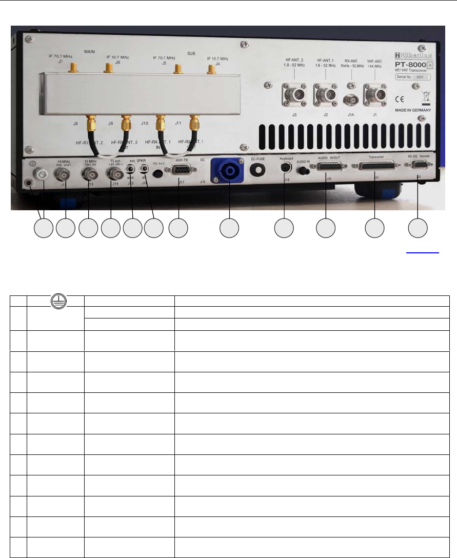 NEVER apply AC to the DC socket (13.8V and 100V for PT-8000 B) on the transceiver rear