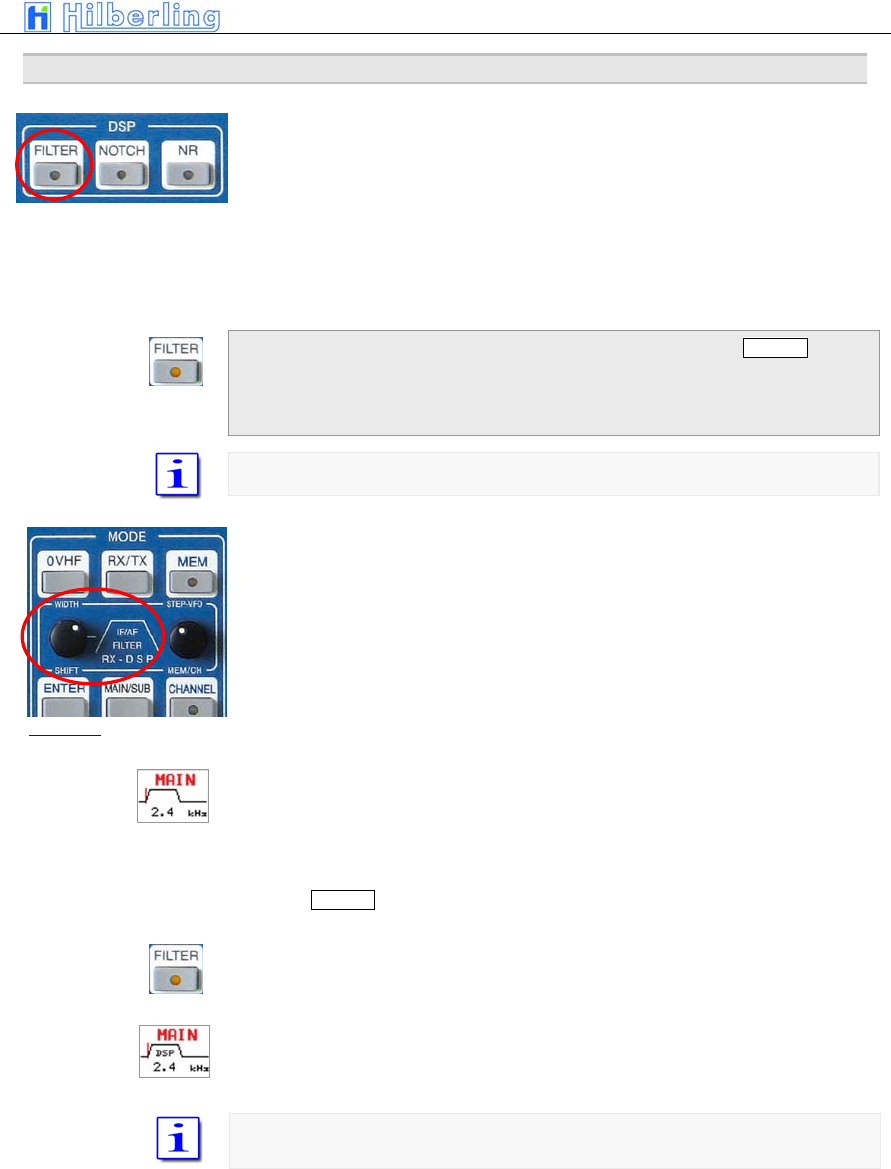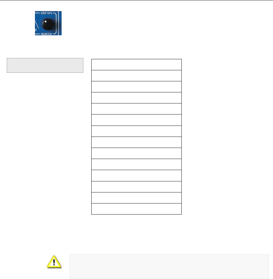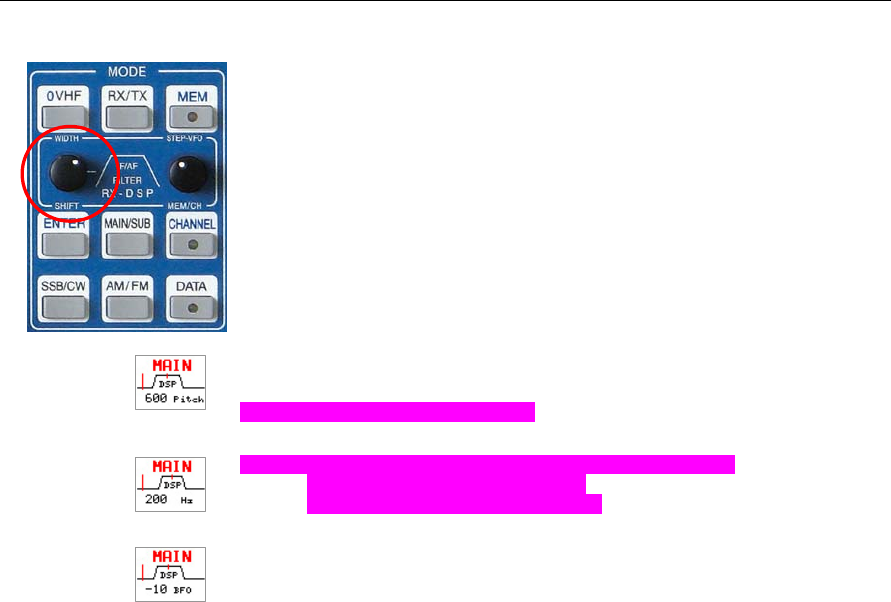 Press and hold while turning STEP-VFO control to select filter bandwidths