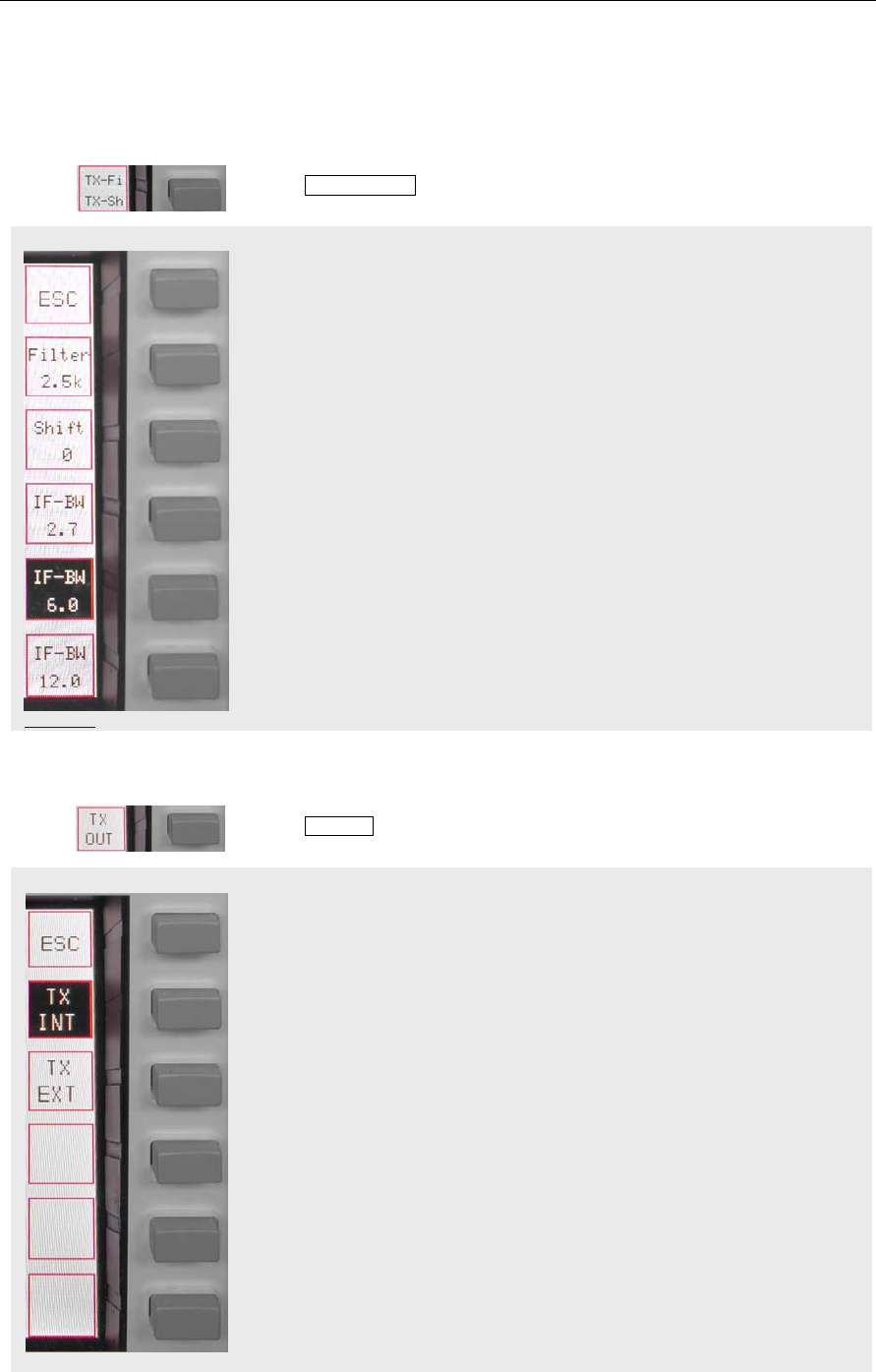 Pushing TX-Fi / TX-Sh softkey will call up the TX-Filter / TX-Shift menu: