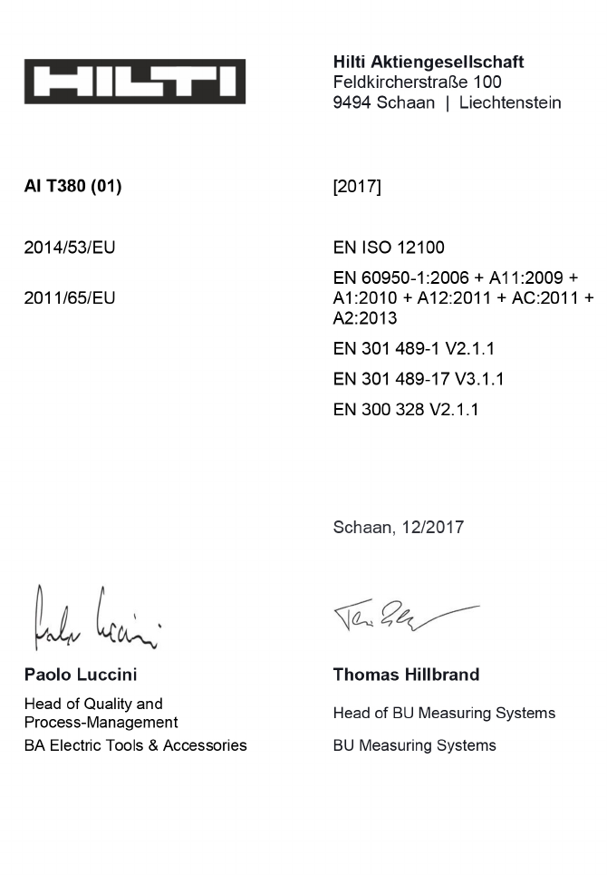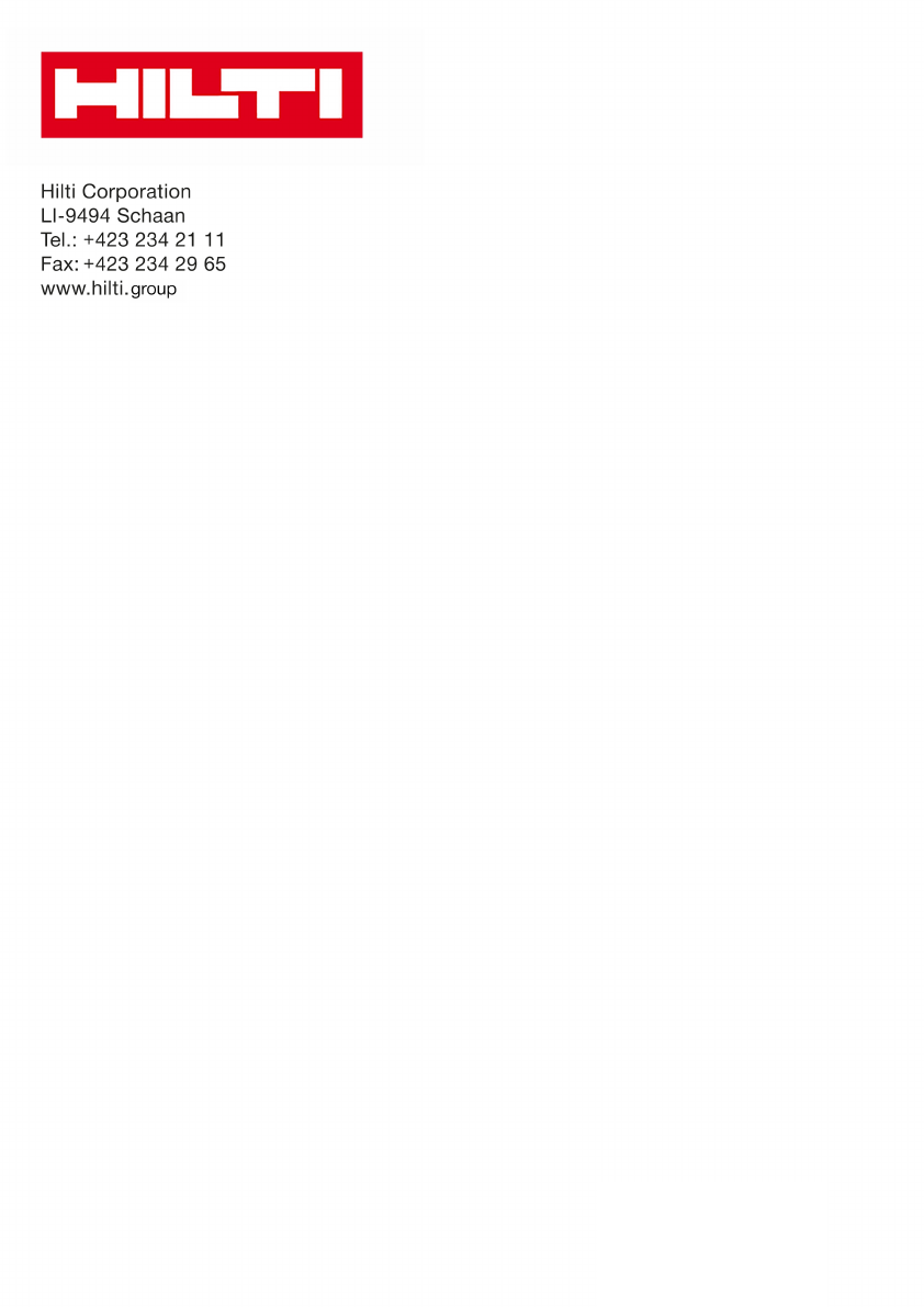 Hilti Entwicklungsgesellschaft mbH | Tool Certification | Hiltistrasse 6 | D-86916 Kaufering, Germany