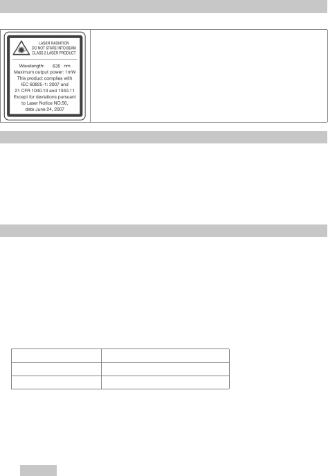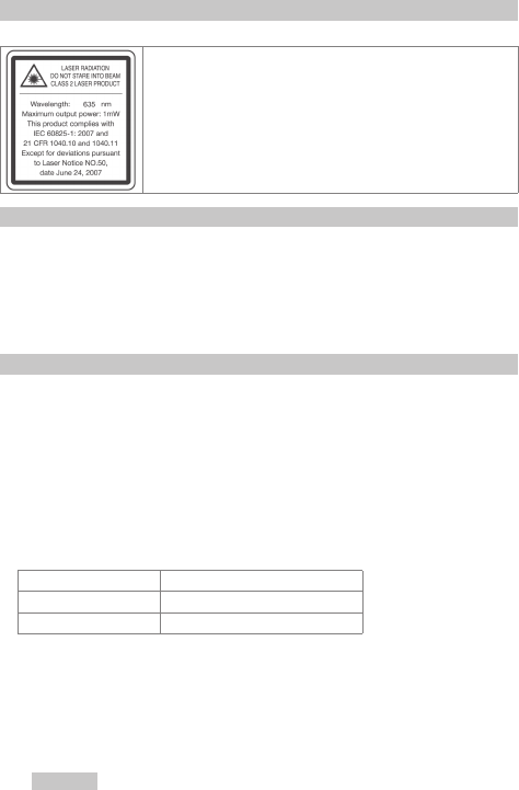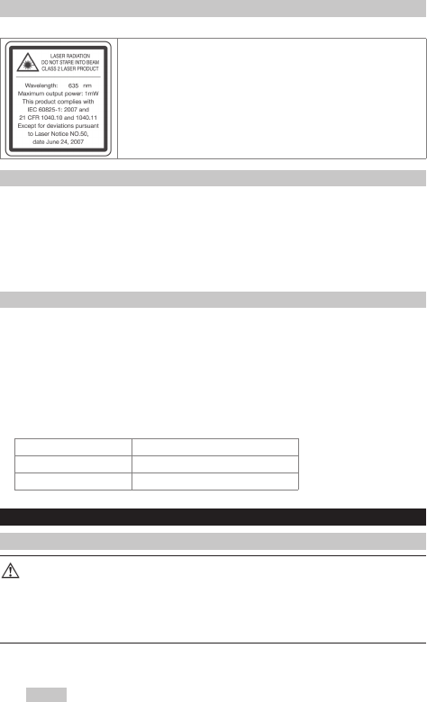Laserstrahlung. Nicht in den Strahl blicken. Laserklasse 2 gemäß