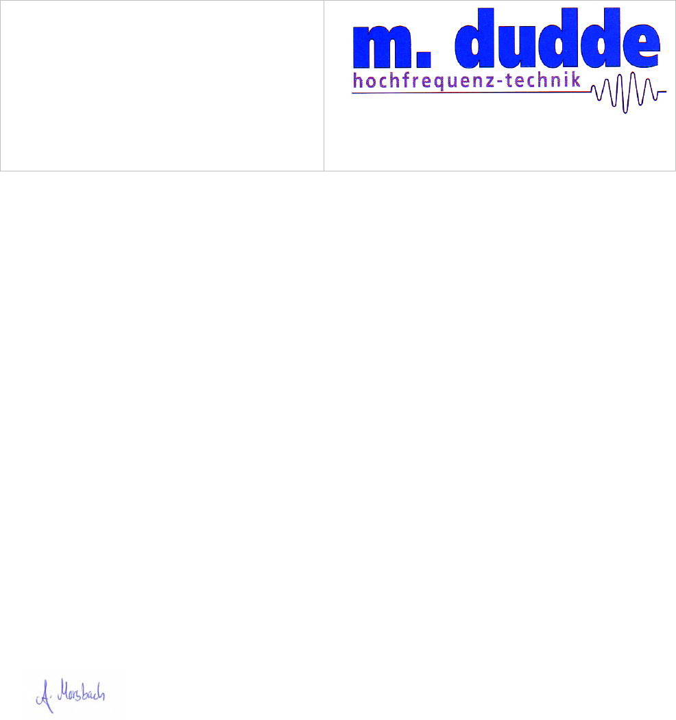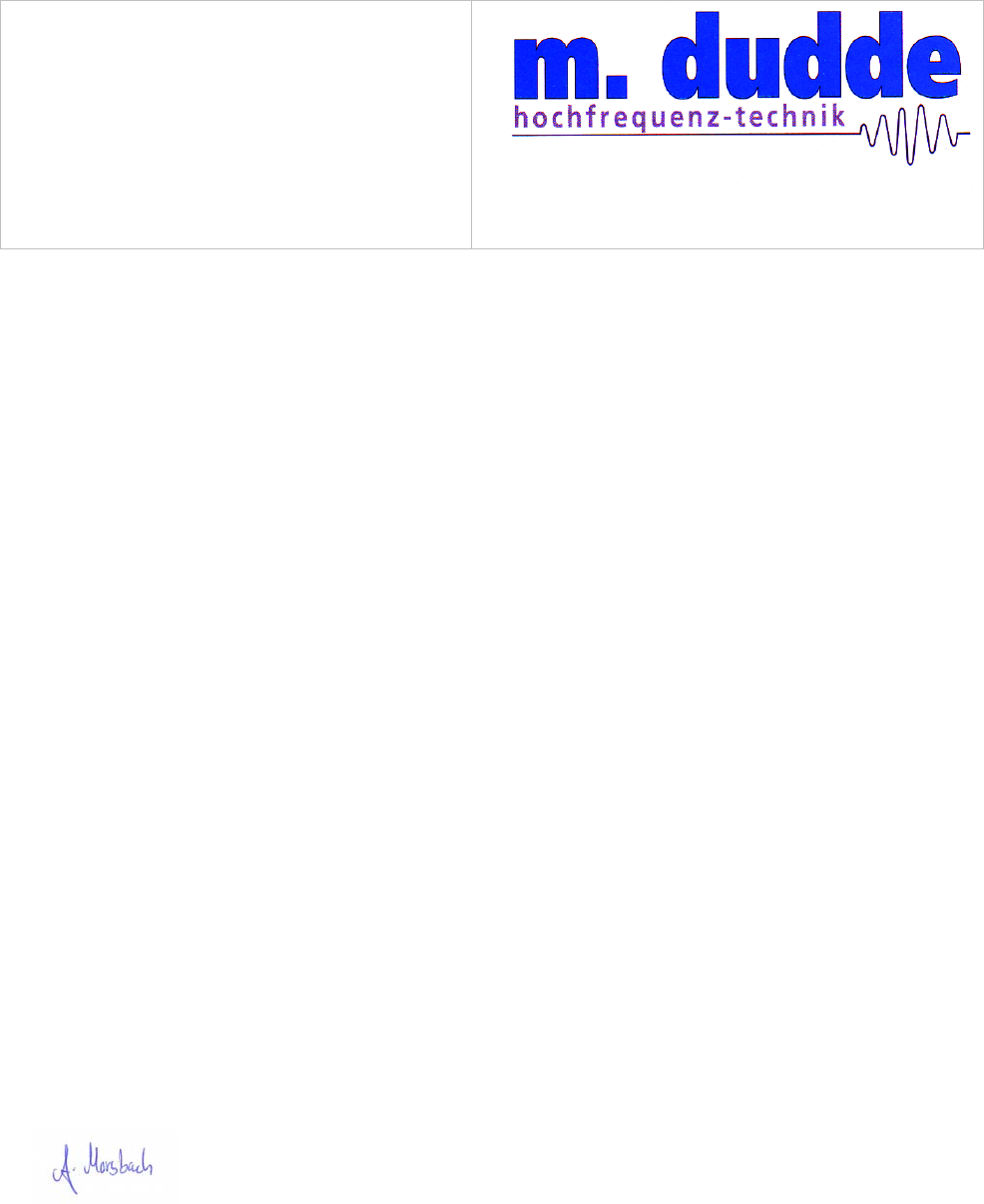 m. dudde hochfrequenz-technik Rottland 5a D-51429 Bergisch Gladbach/ Germany Tel. +49 2207-96890 Fax +49 2207 968920