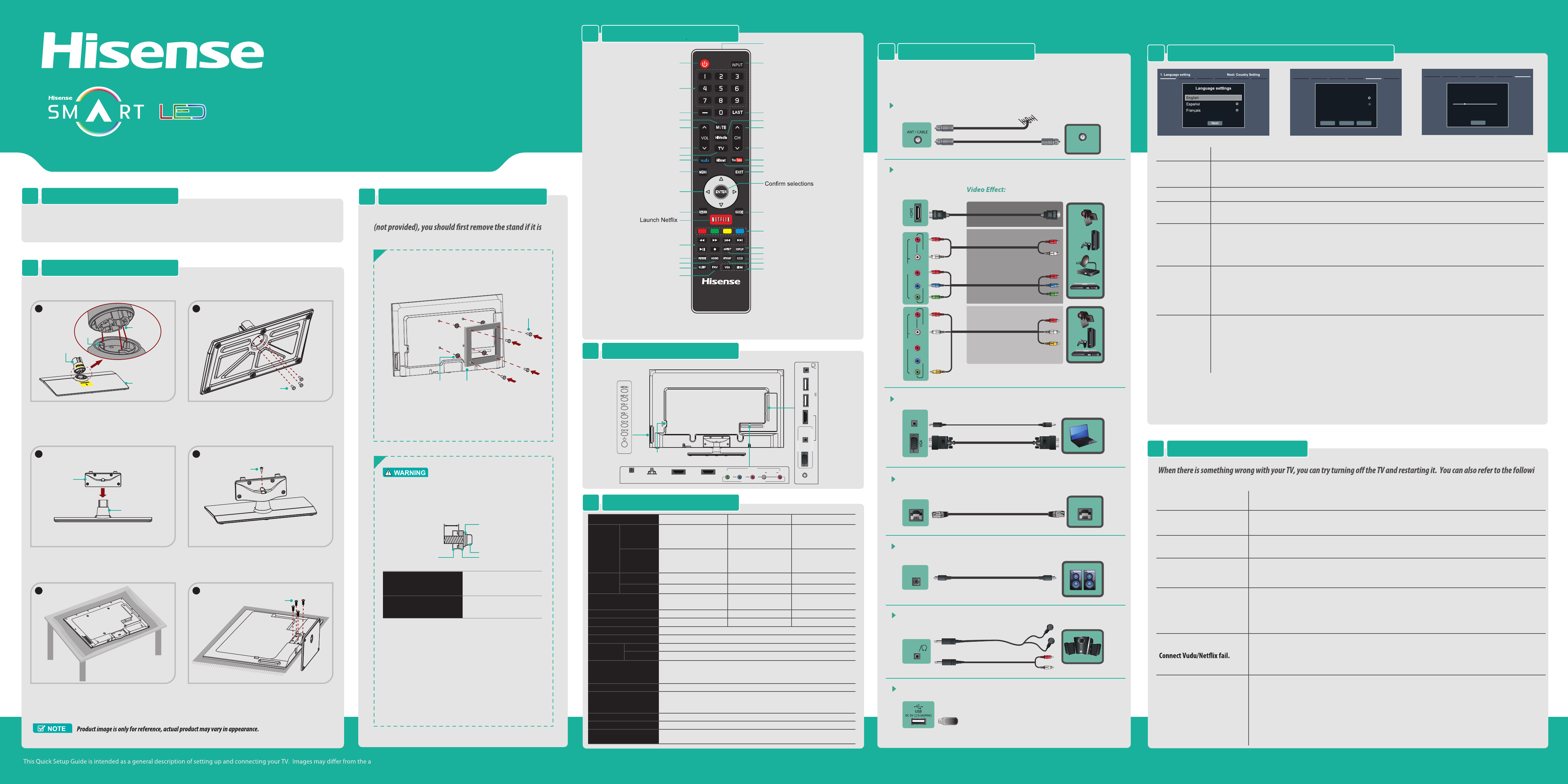 chart for problem and solution tips. If the problem cannot be resolved, please contact Hisense for additional assistance.