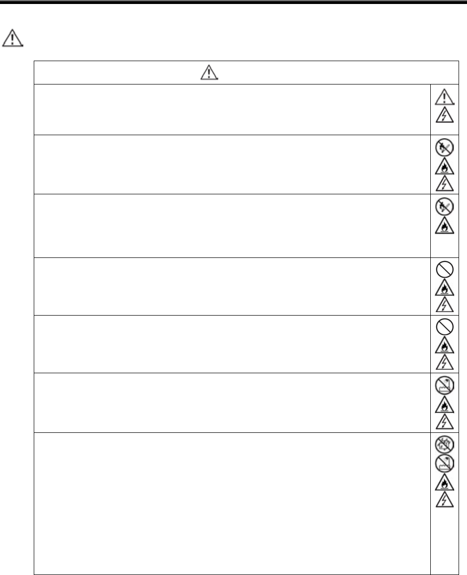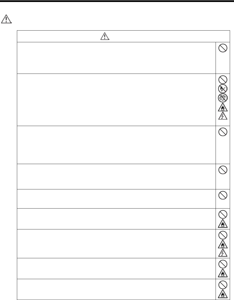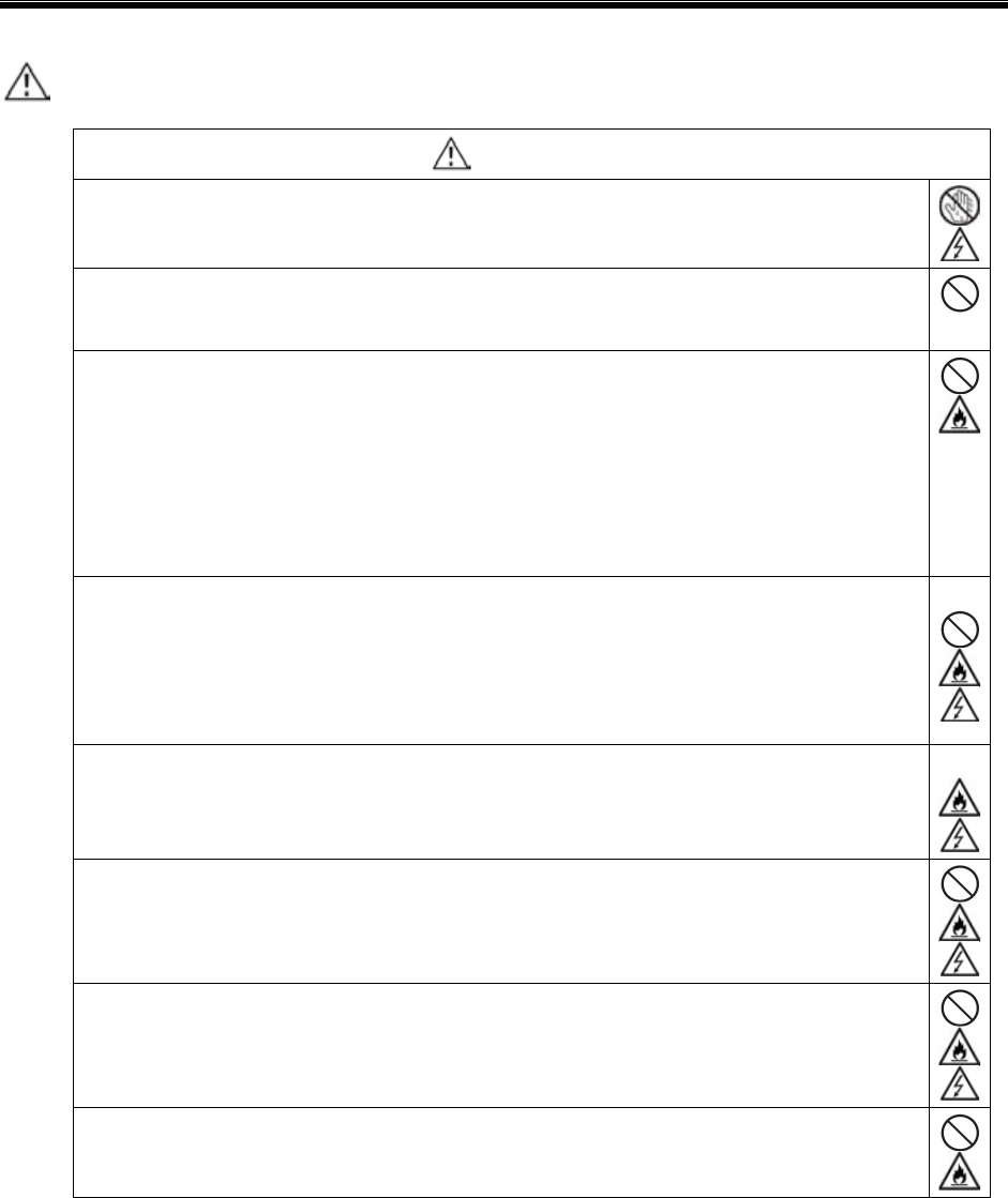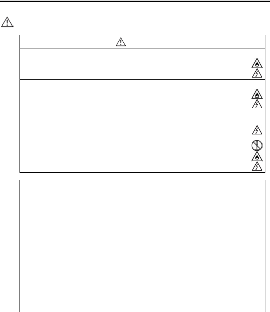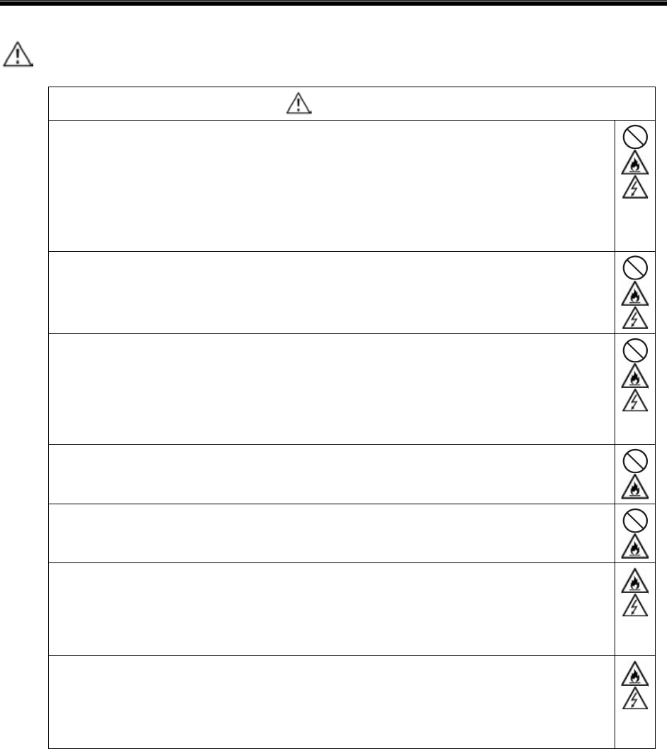 Follow rules below. Otherwise, fire or an electric shock due to a short circuit may