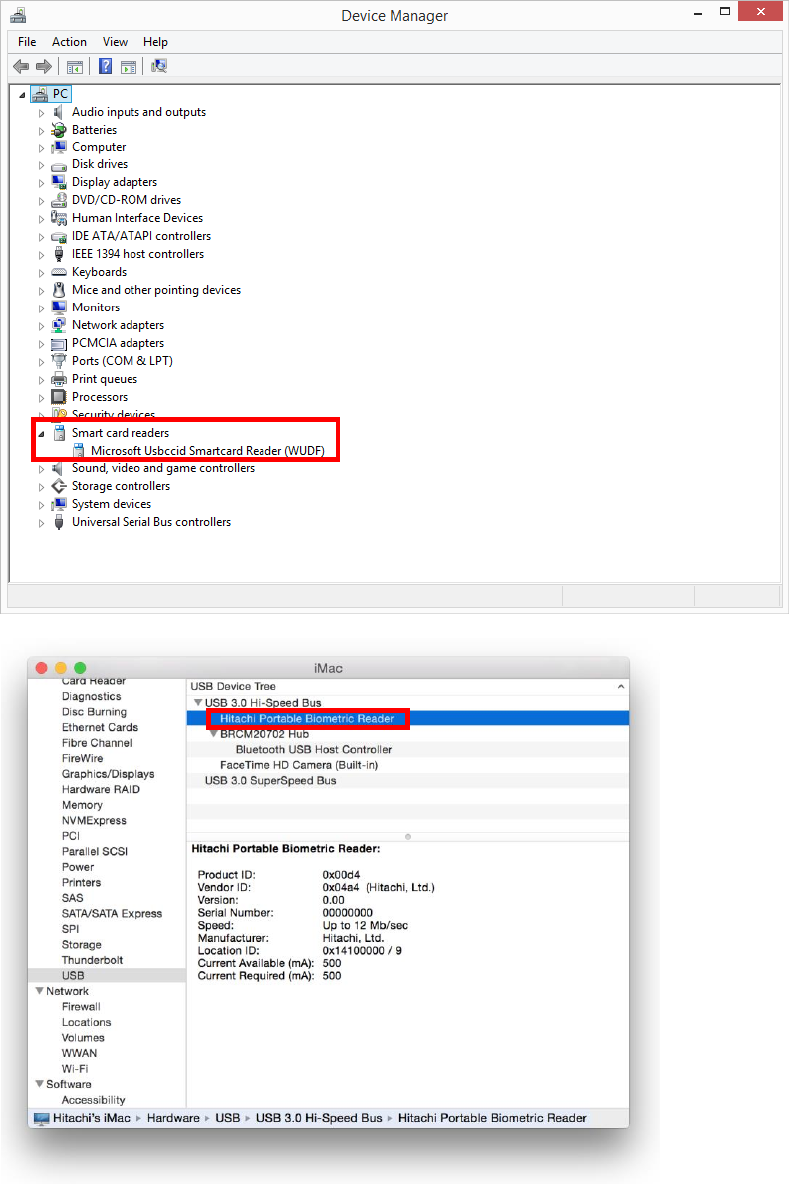 See 2.5 Check the Biometric Reader is recognized and confirm that the device