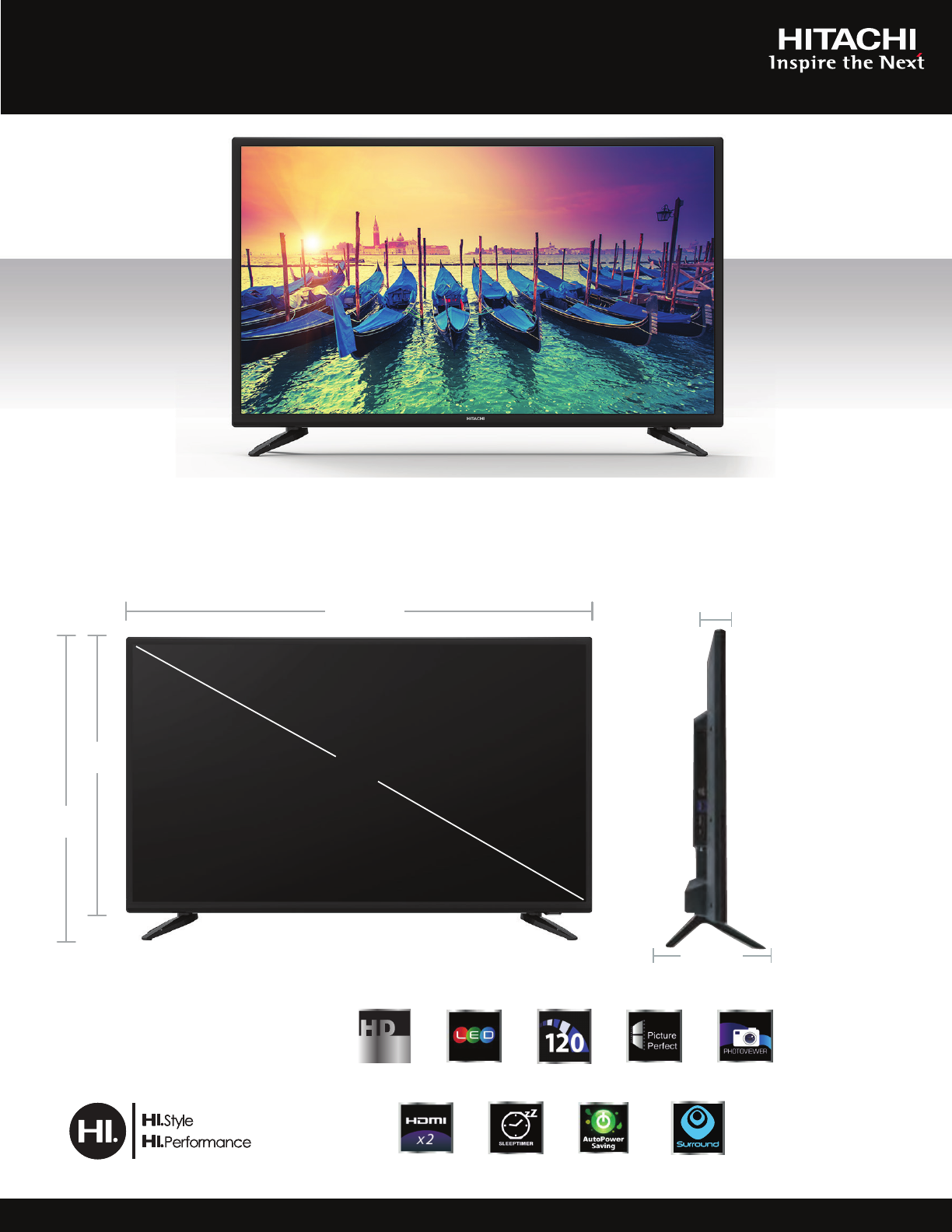 All specifications, features and dimensions are subject to change without notice. Refer to www.hitachi.us/tv for updates or more information.