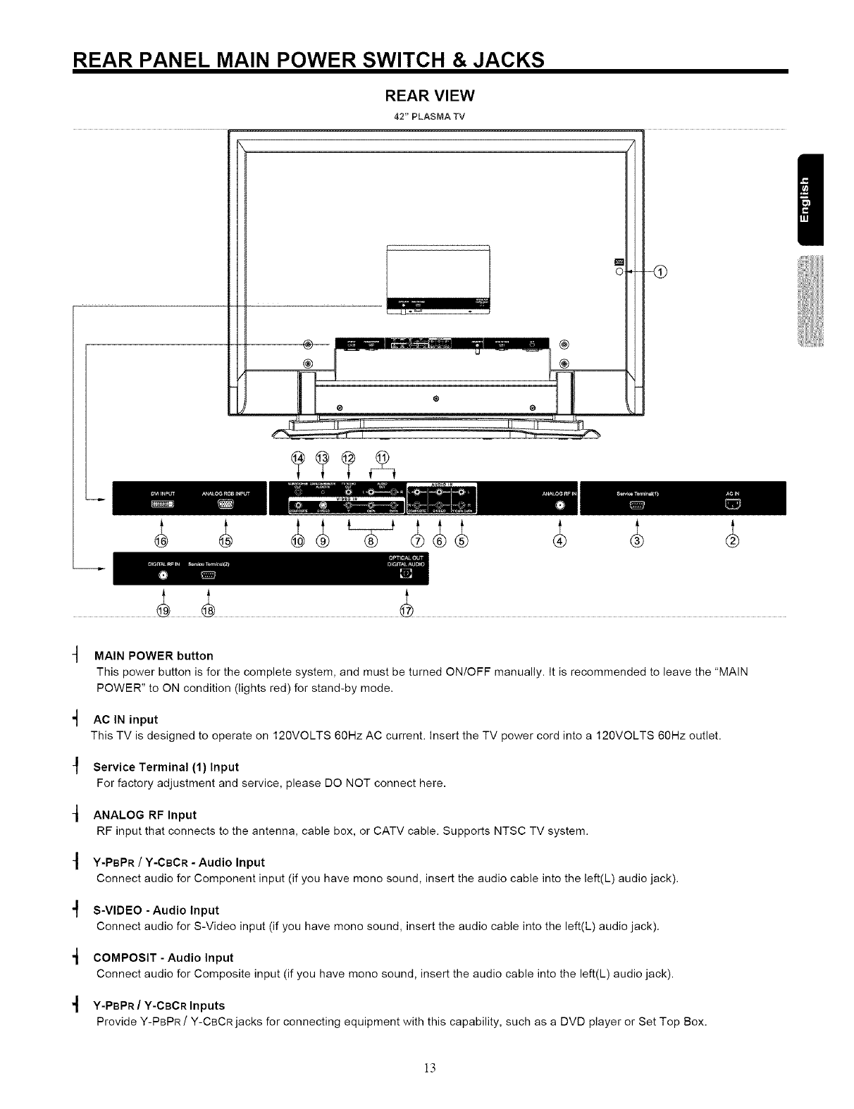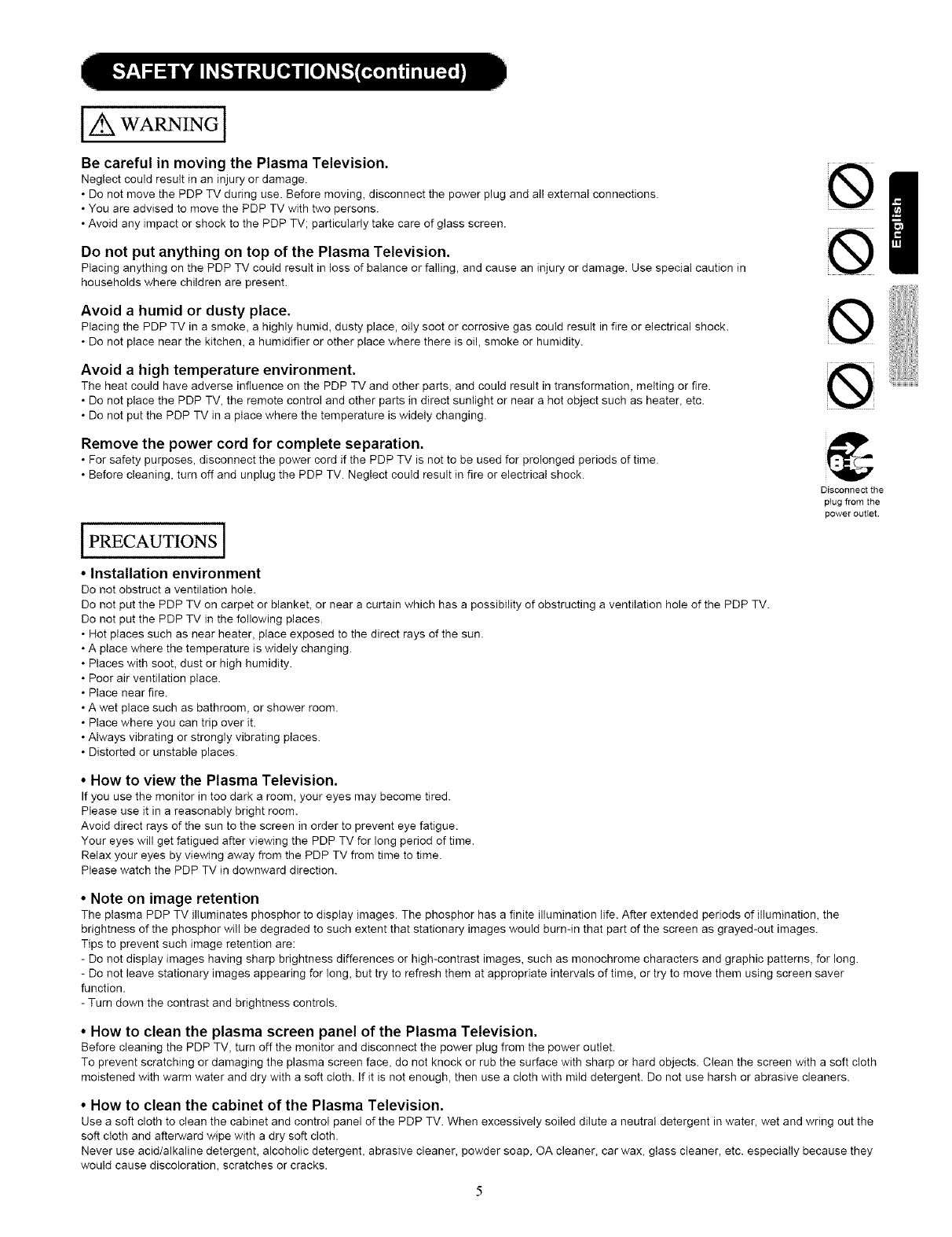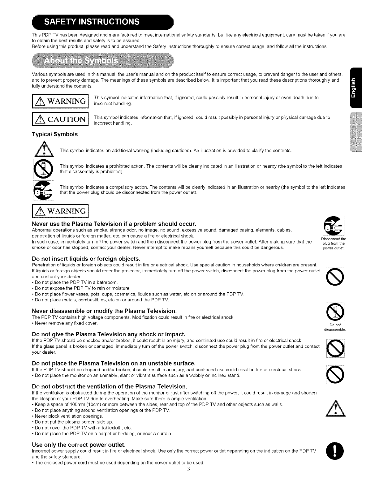 THIS PLASMA TELEVISION IS DESIGNED TO OPERATE ON 120 VOLTS 60Hz, AC CURRENT. INSERT THE PLASMA