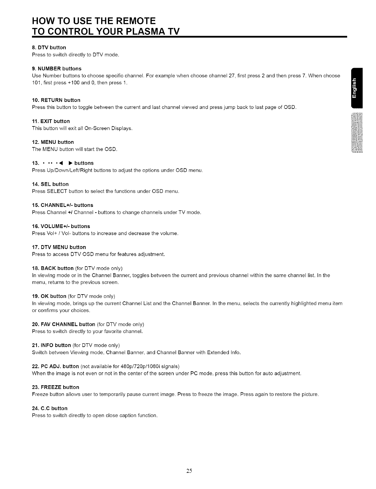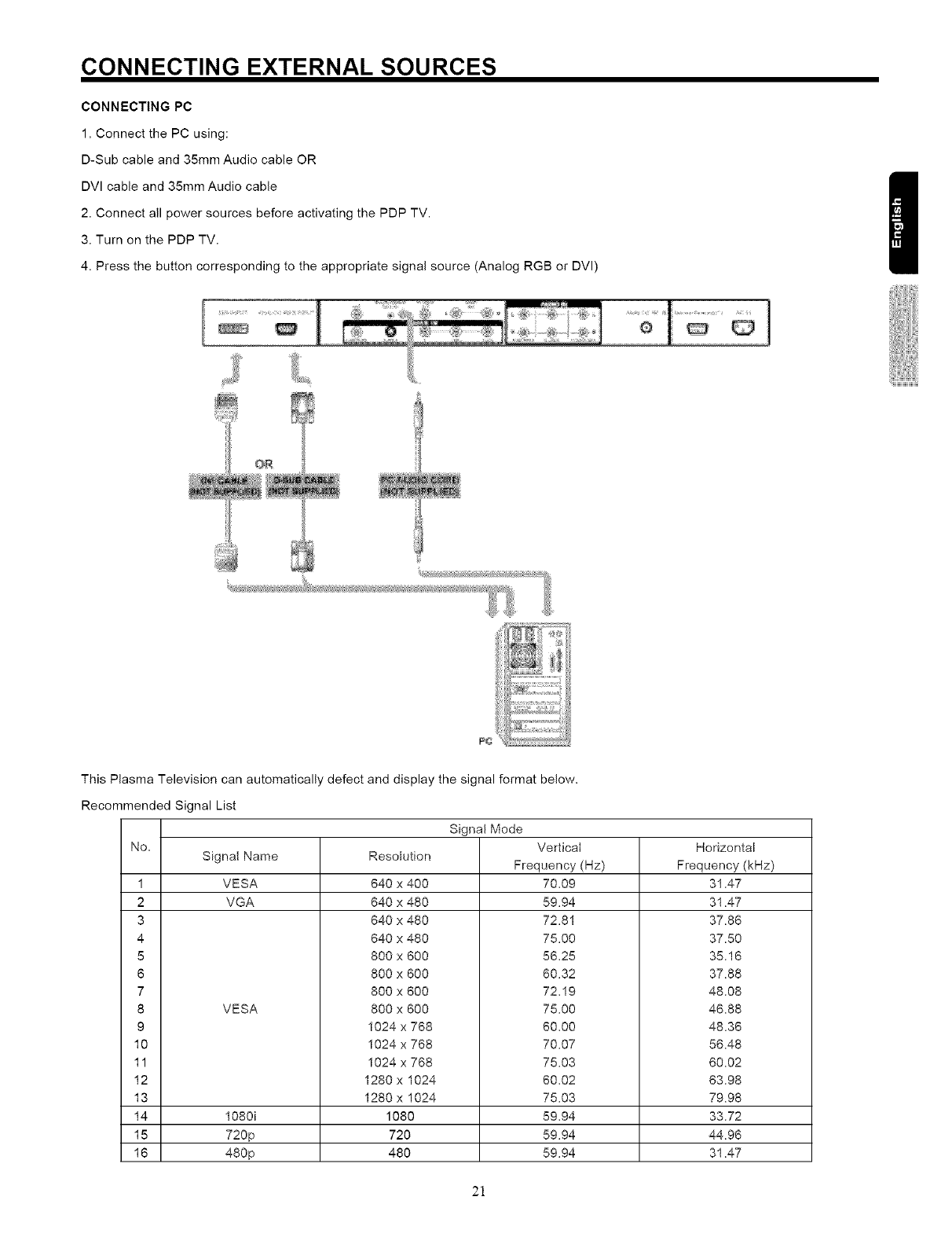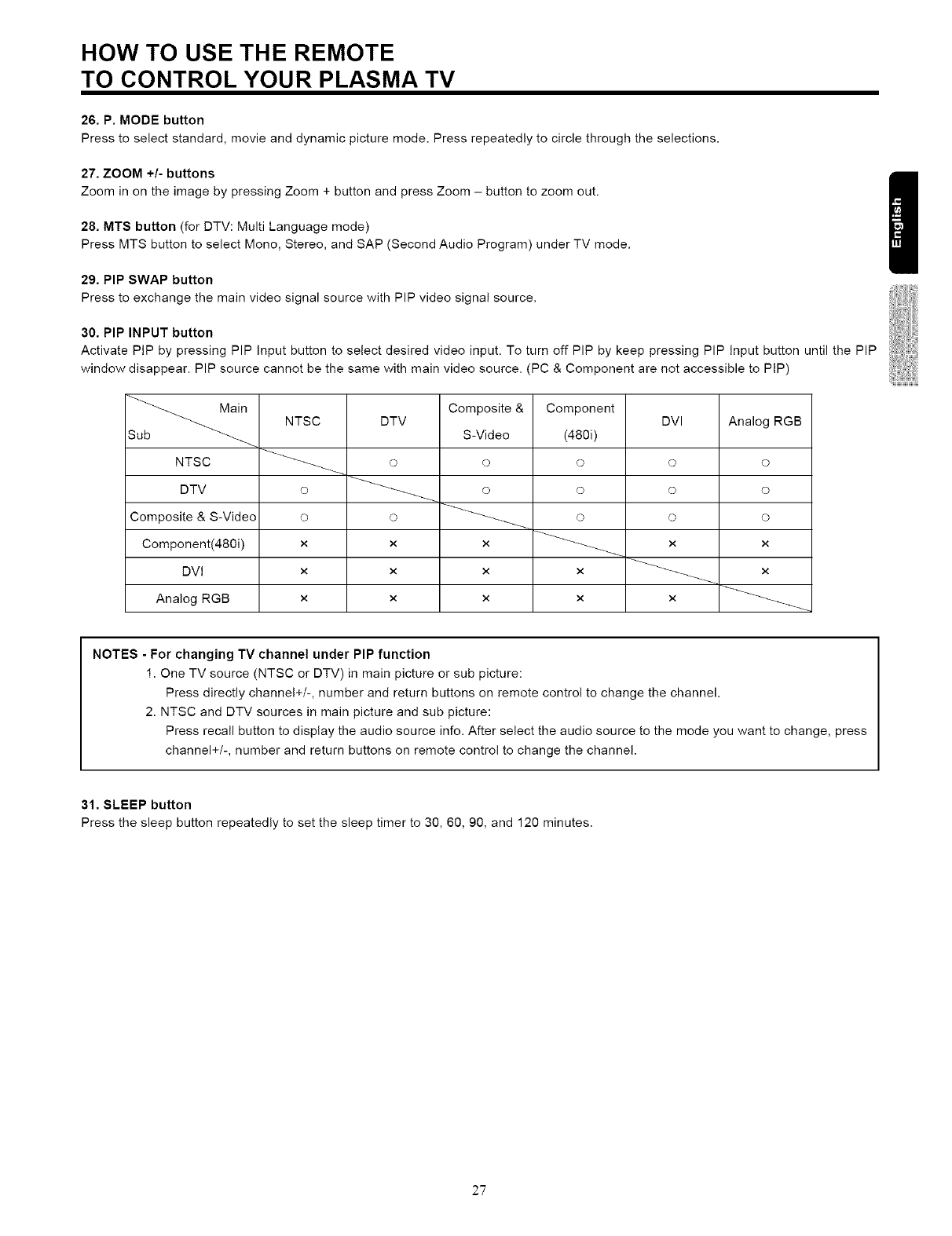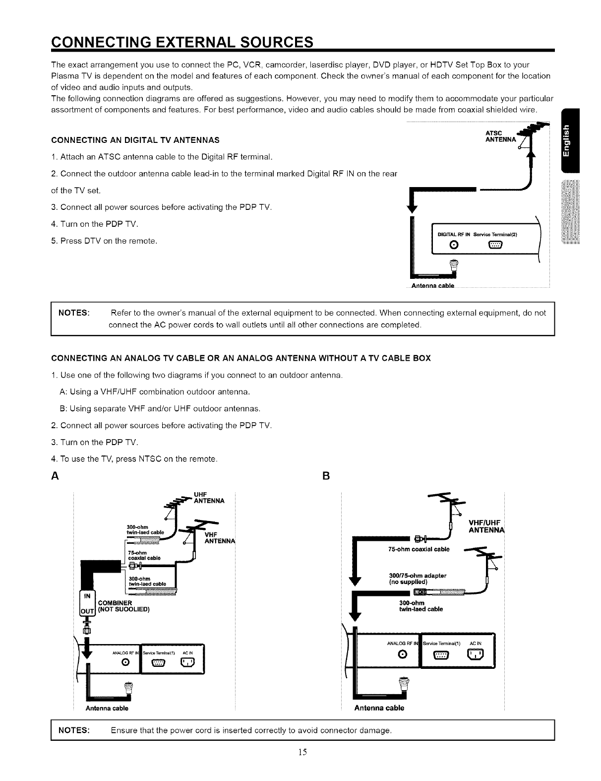 THIS PLASMA TELEVISION IS DESIGNED TO OPERATE ON 120 VOLTS 60Hz, AC CURRENT. INSERT THE PLASMA