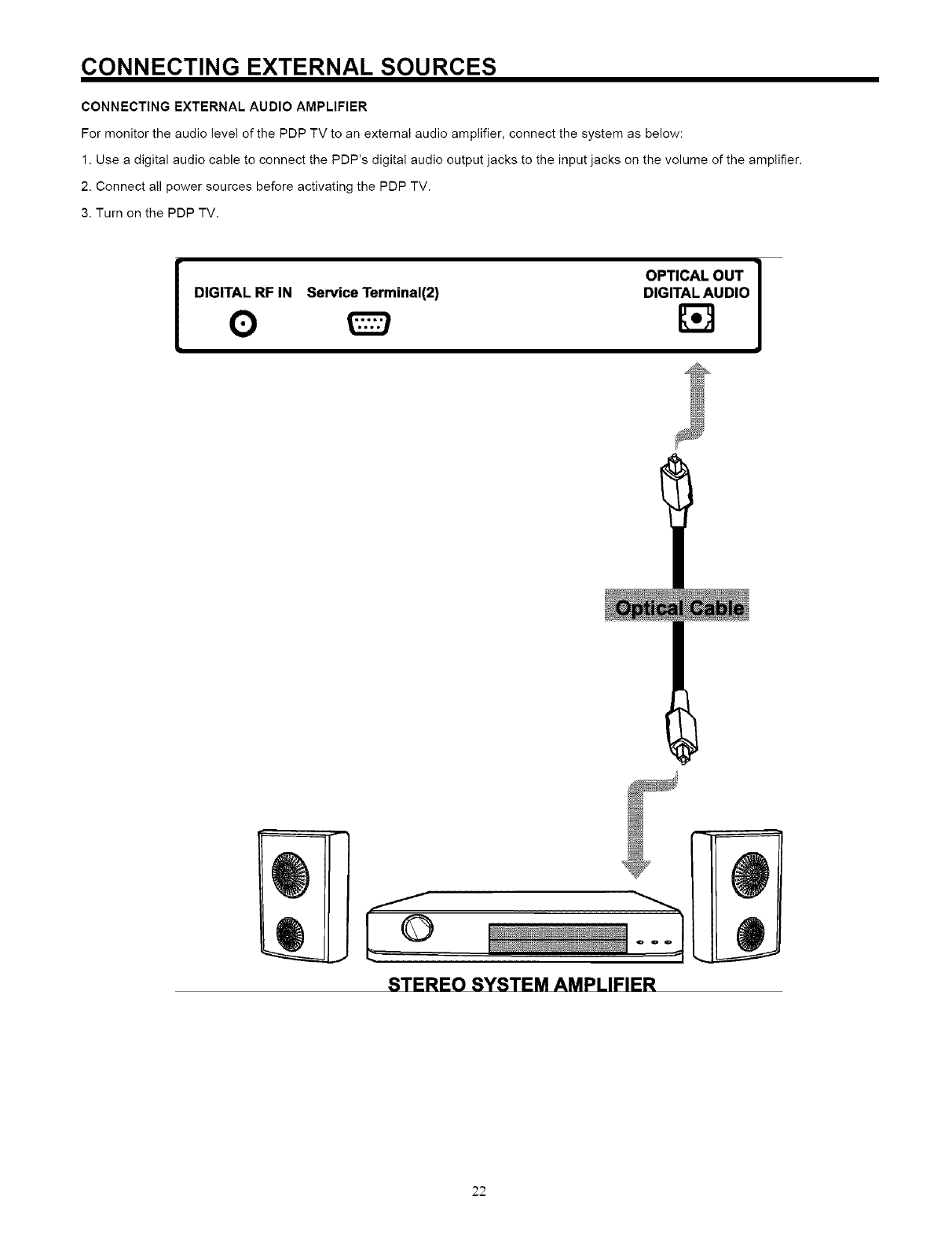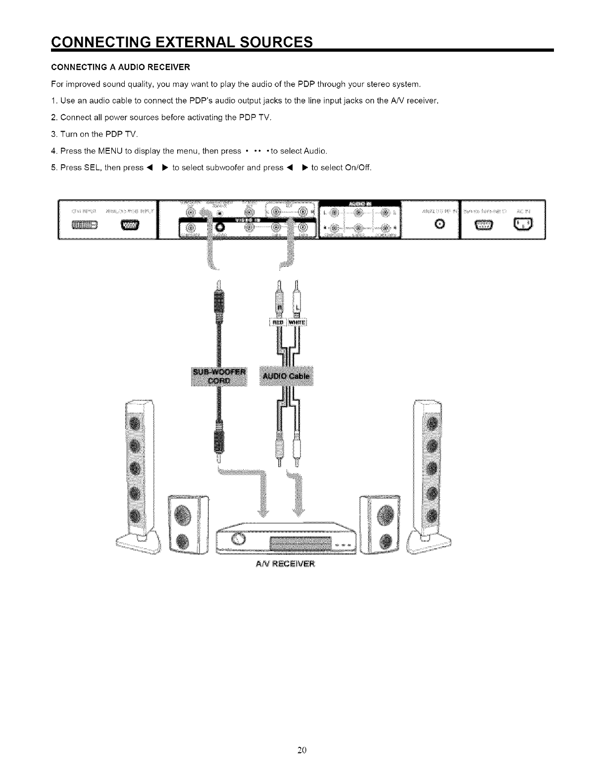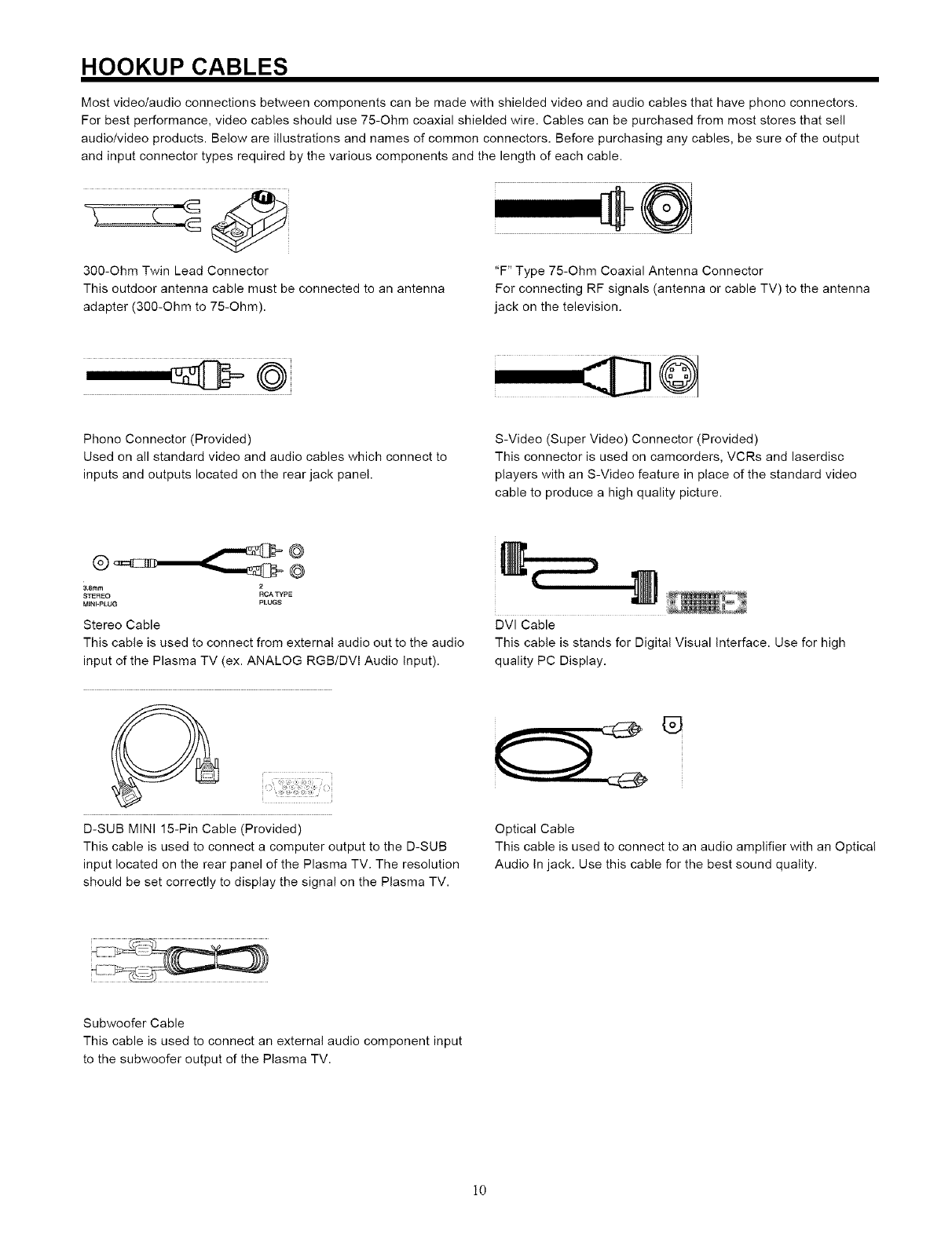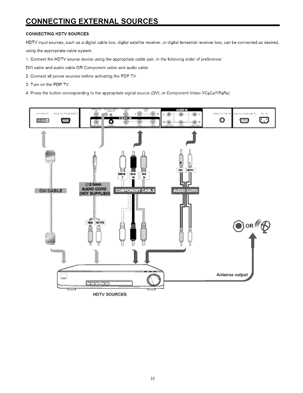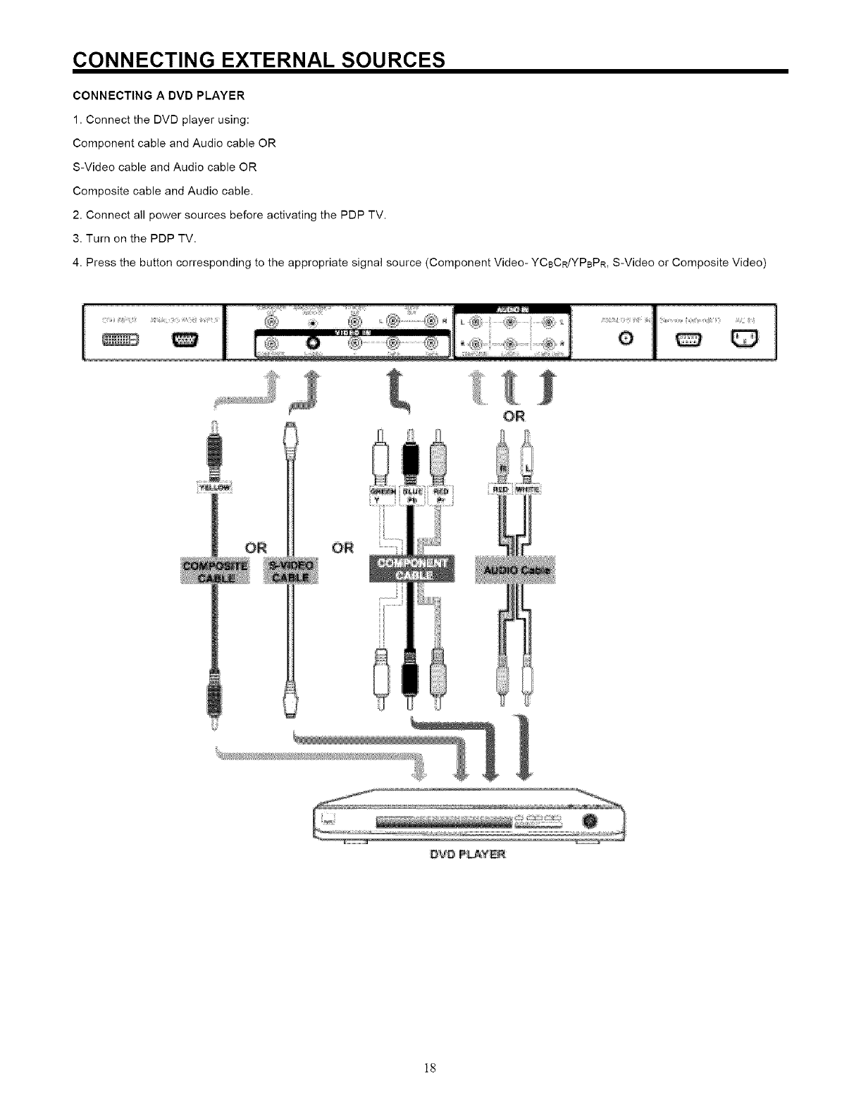 NEVER CONNECT THE PLASMA TELEVISION TO 50Hz, DIRECT CURRENT, OR ANYTHING OTHER THAN THE SPECIFIED