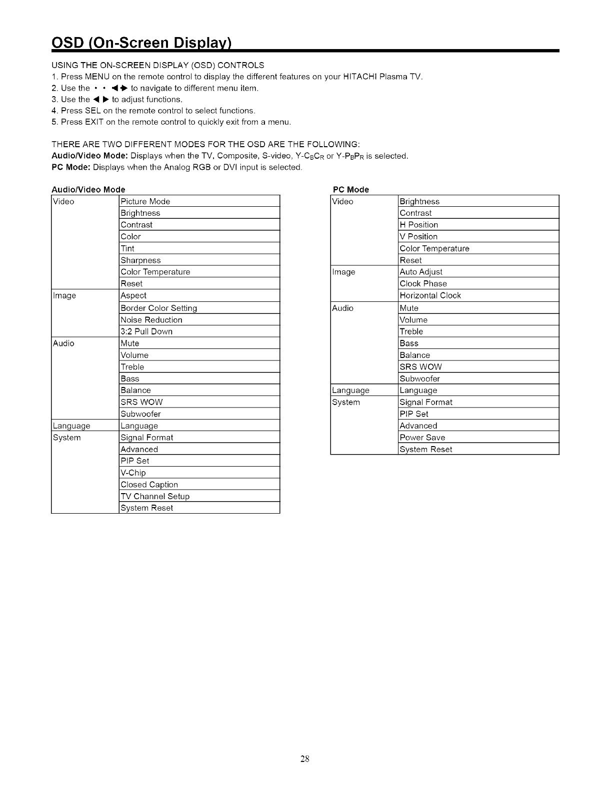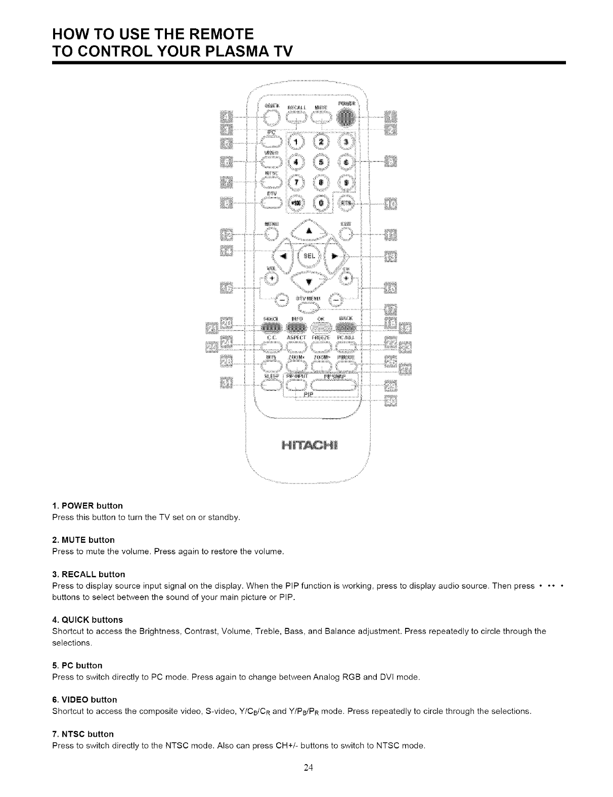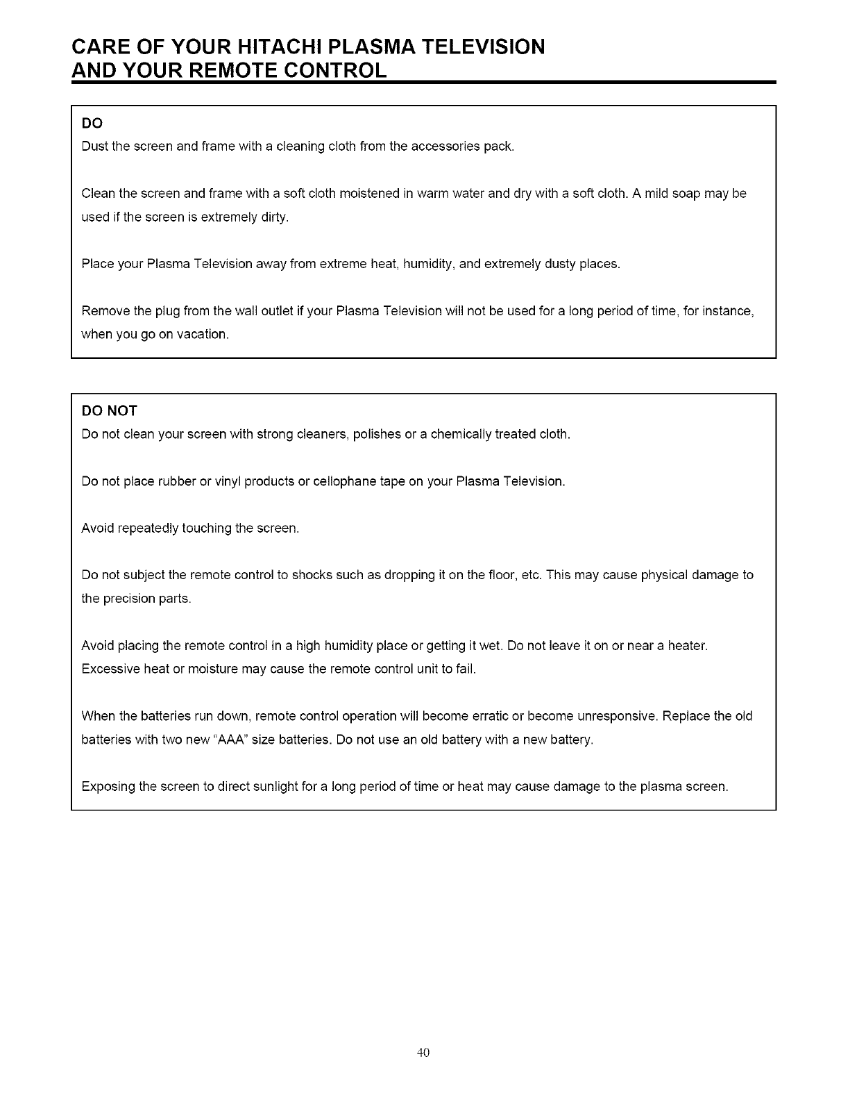 YOUR HITACHI PLASMA TELEVISION