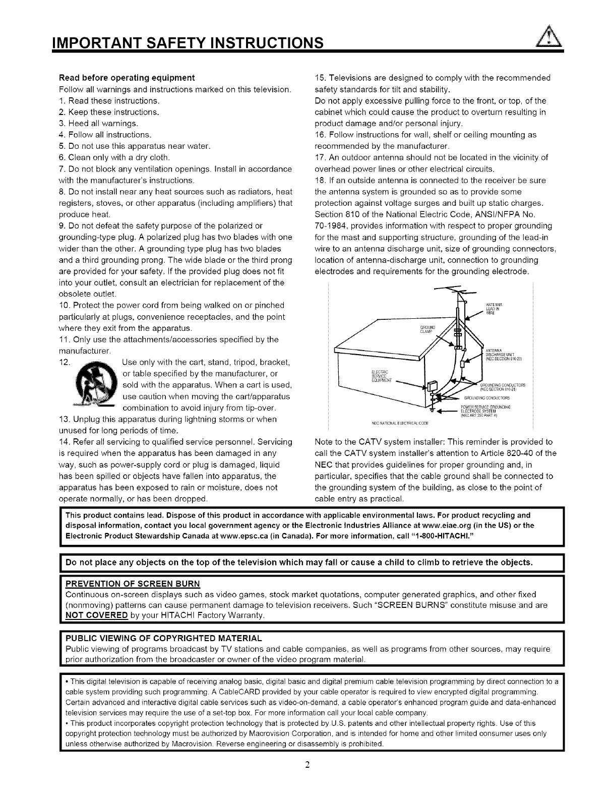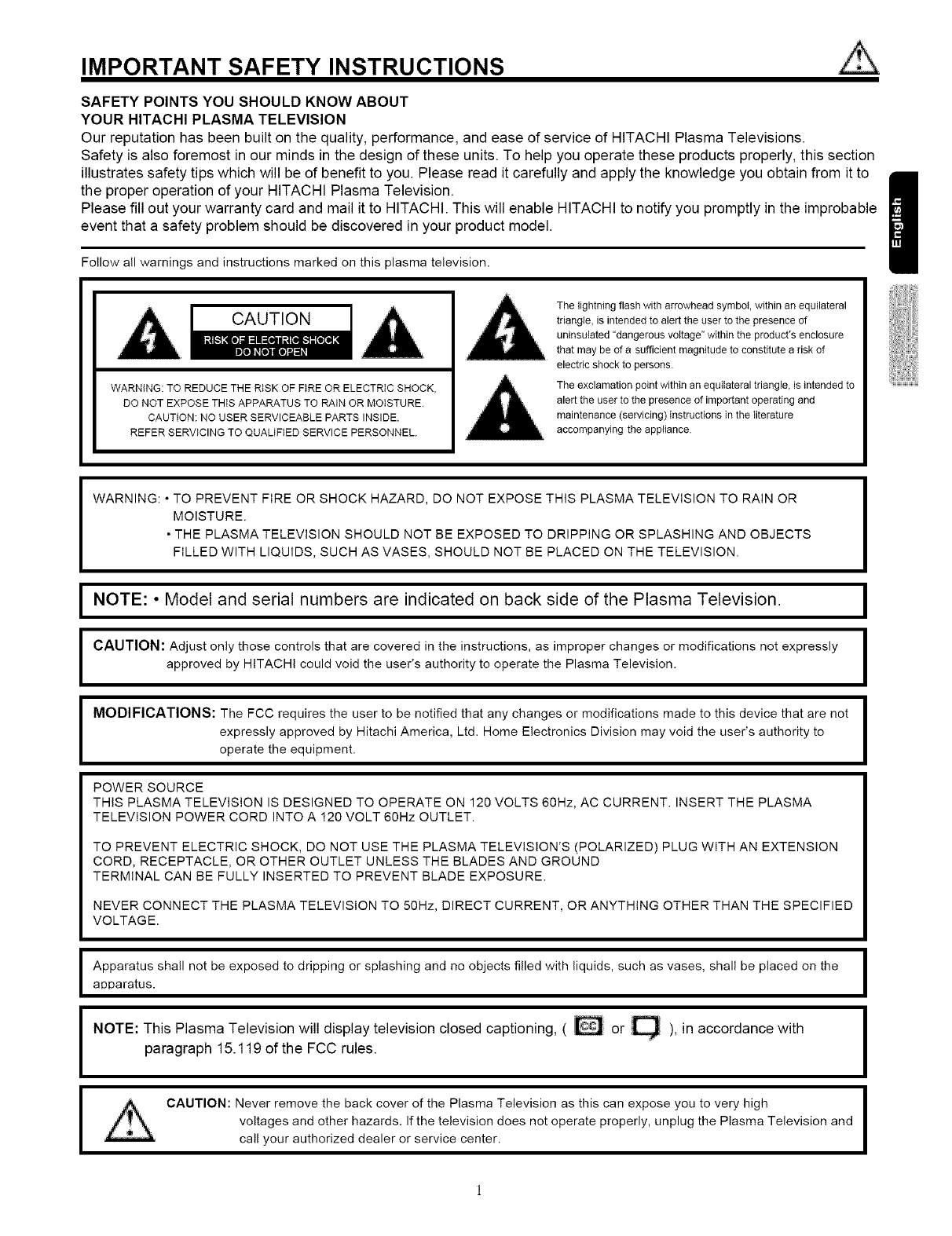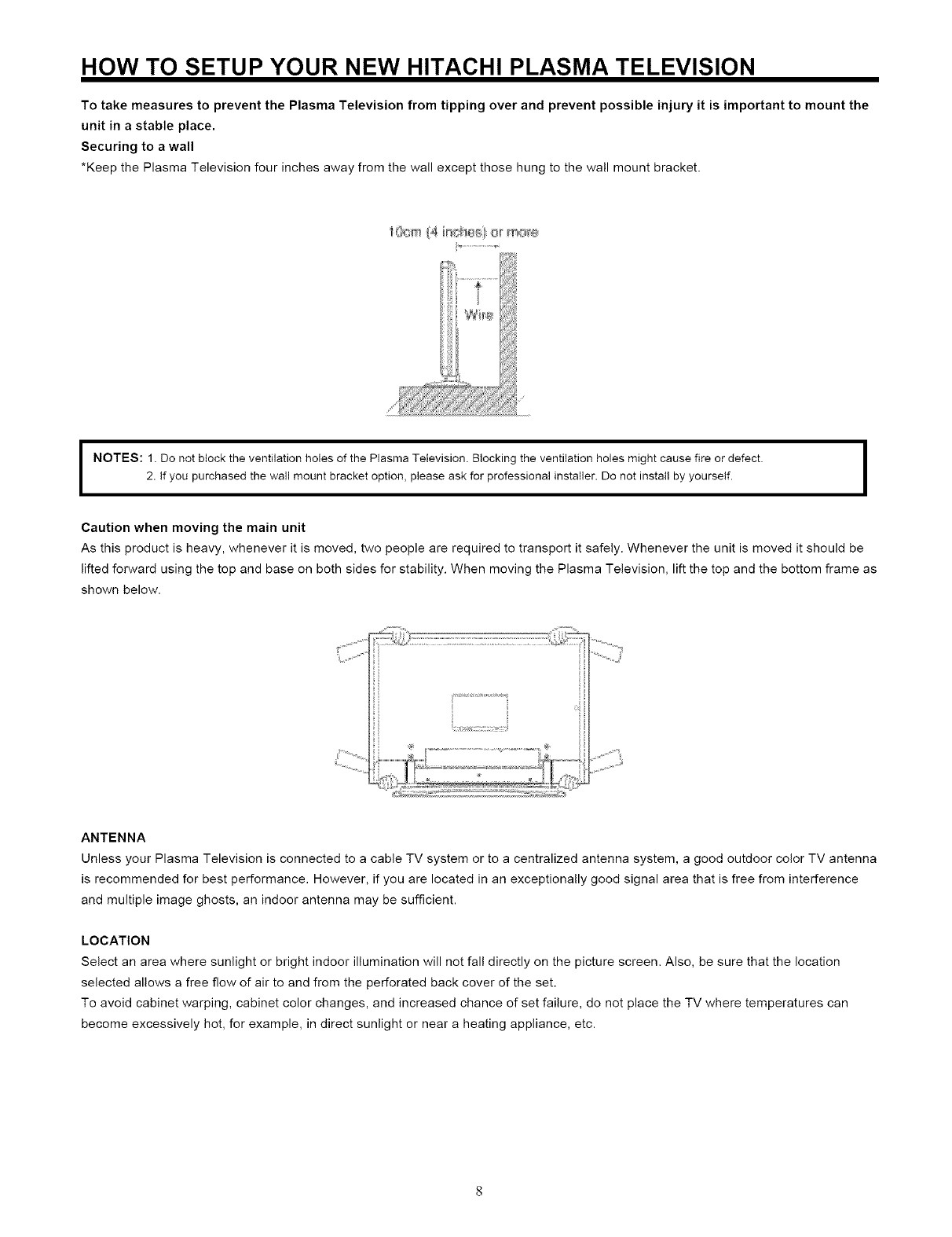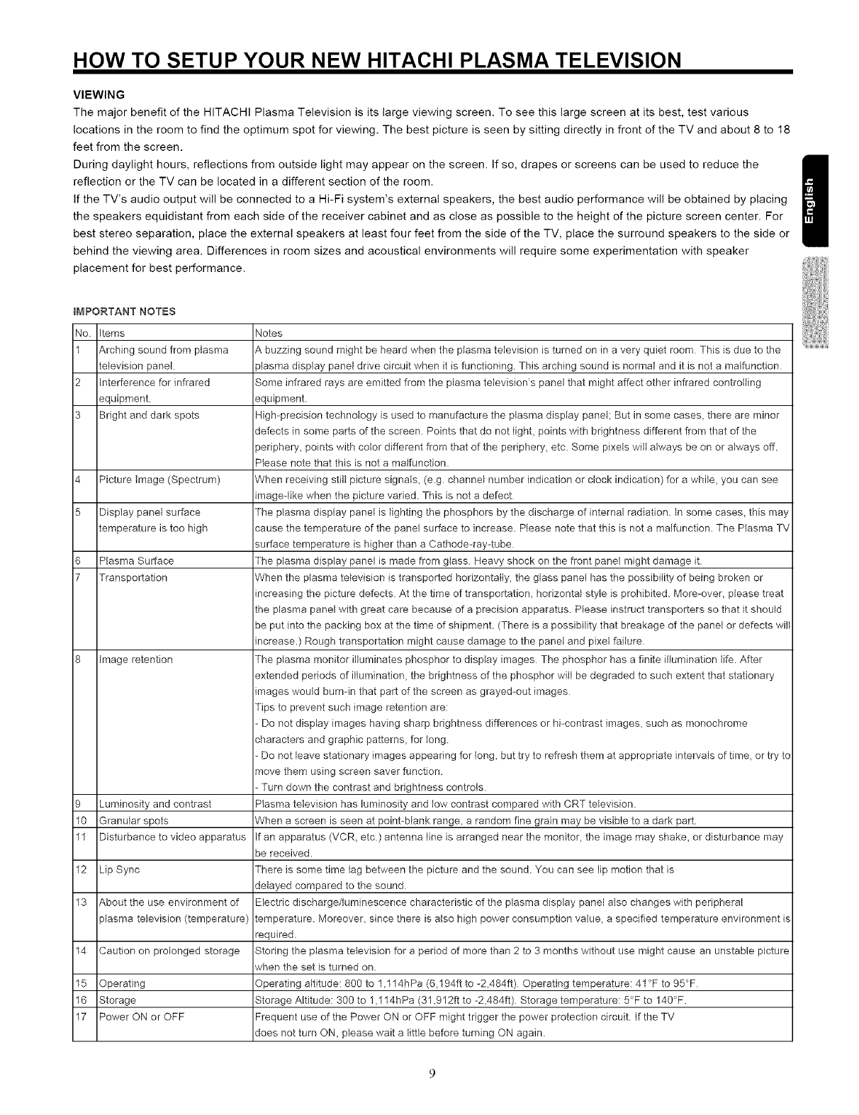the proper operation of your HITACHI Plasma Television.