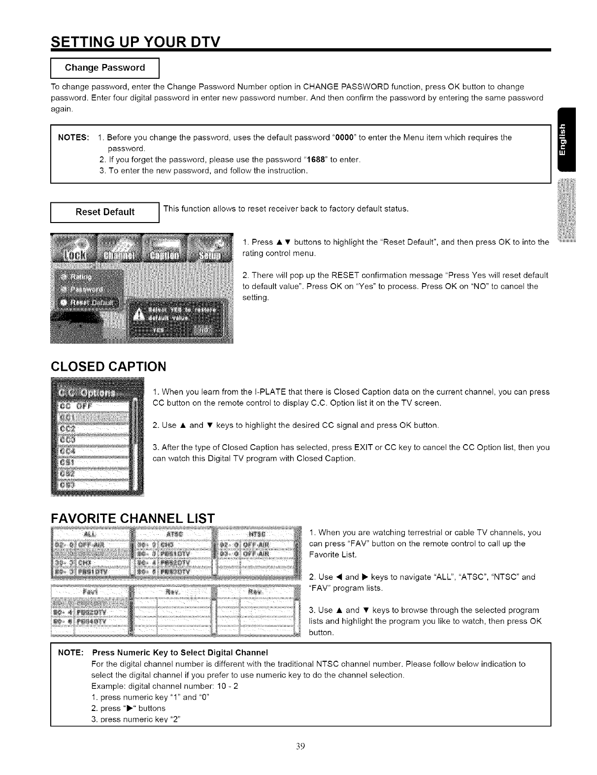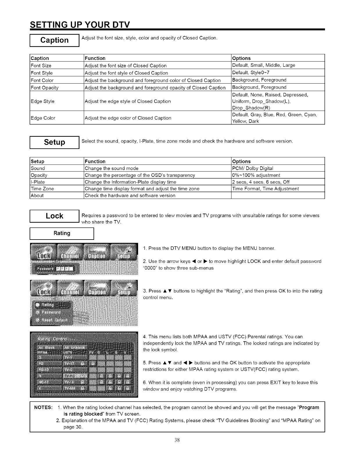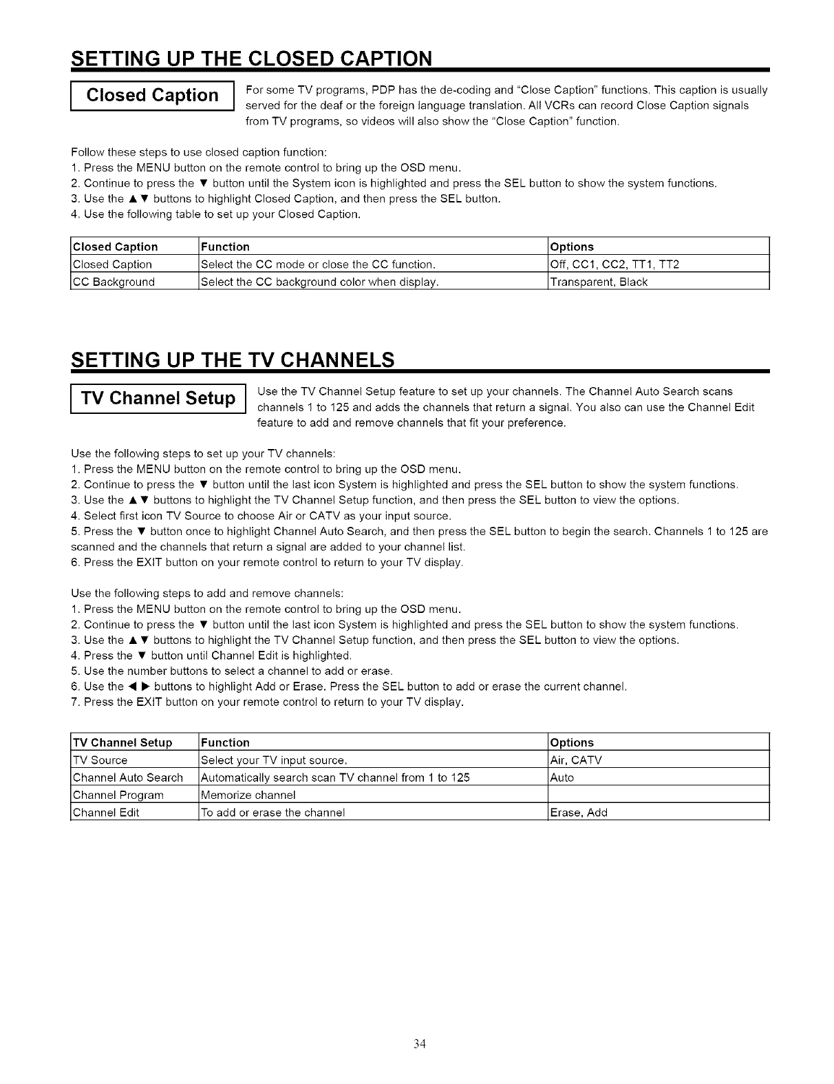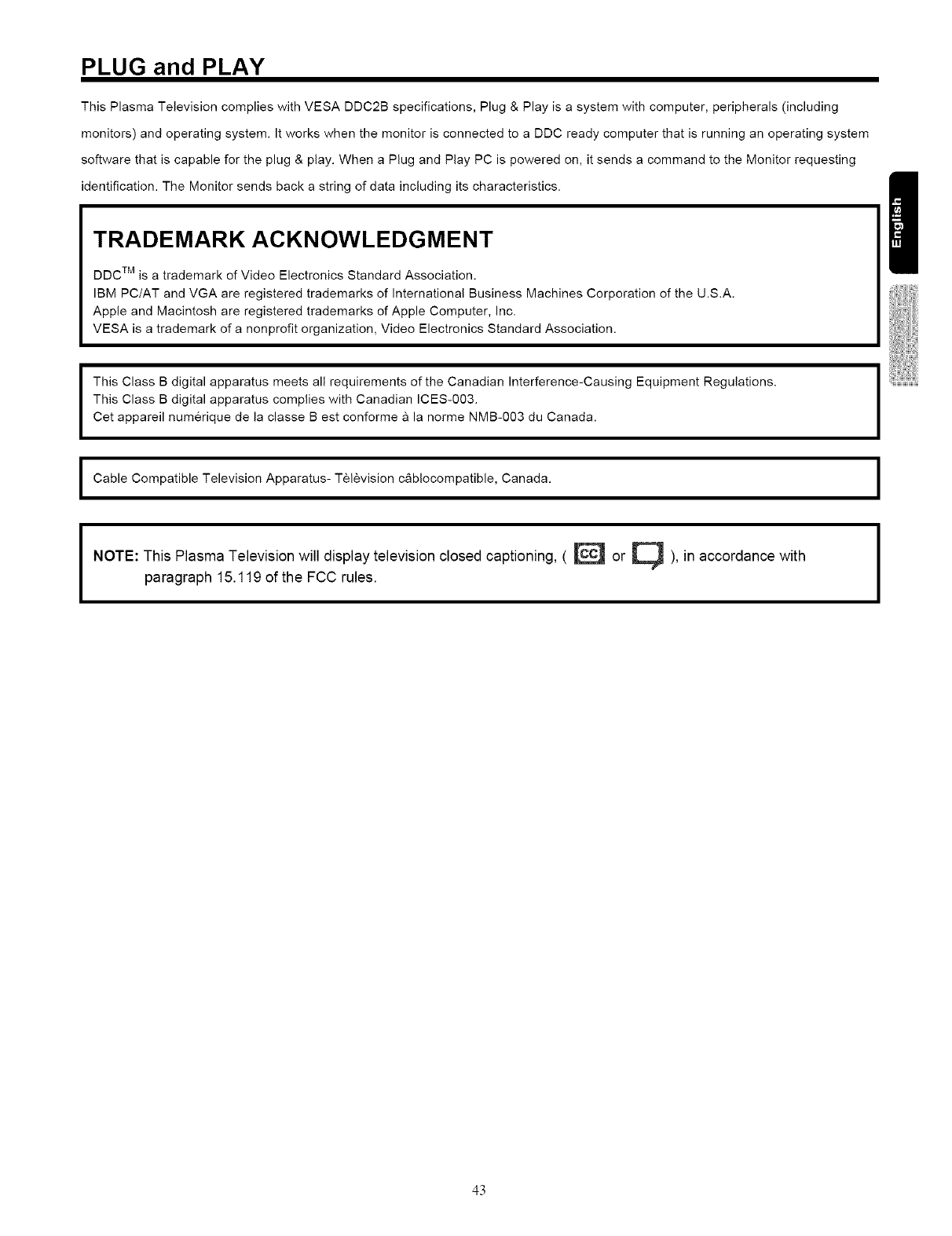 NOTE: This Plasma Television will display television closed captioning, ( _ or _ ), in accordance with
