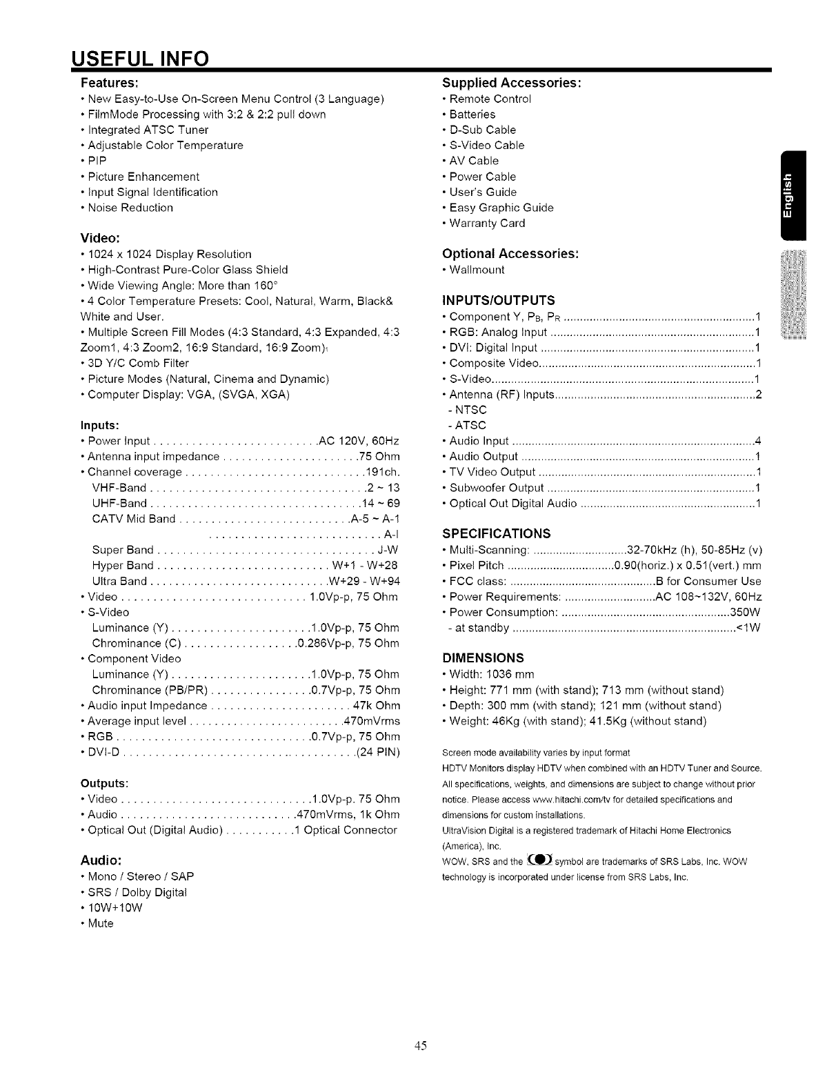 HITACHI Plasma Television Manual L0521470 HITACHI Plasma Television Owner's Manual, HITACHI Plasma Television installation guides