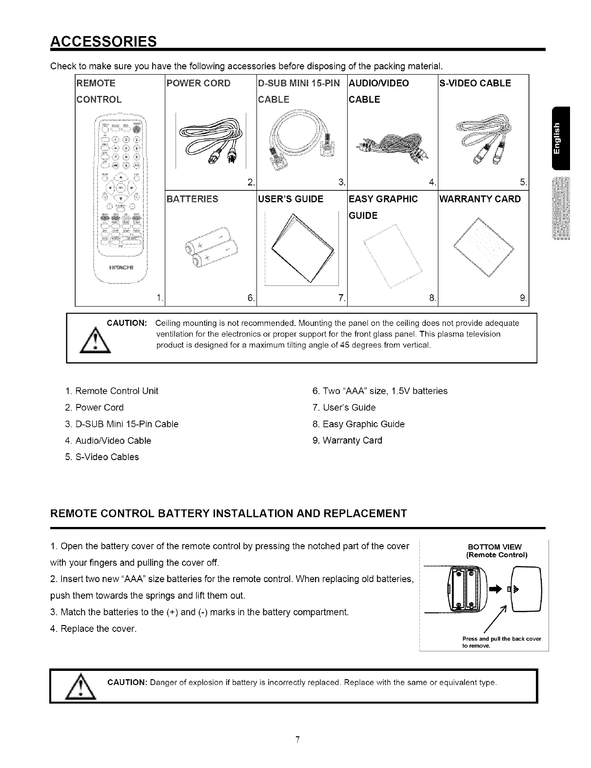 approved by HITACHI could void the user's authority to operate the Plasma Television.