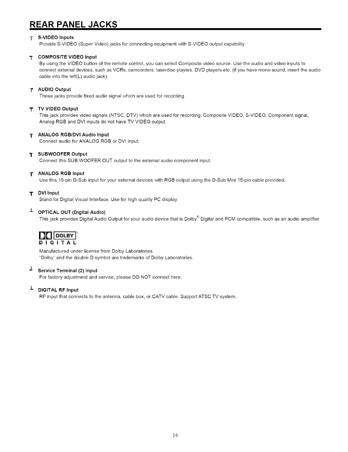 14. Refer all servicing to qualified service personnel. Servicing