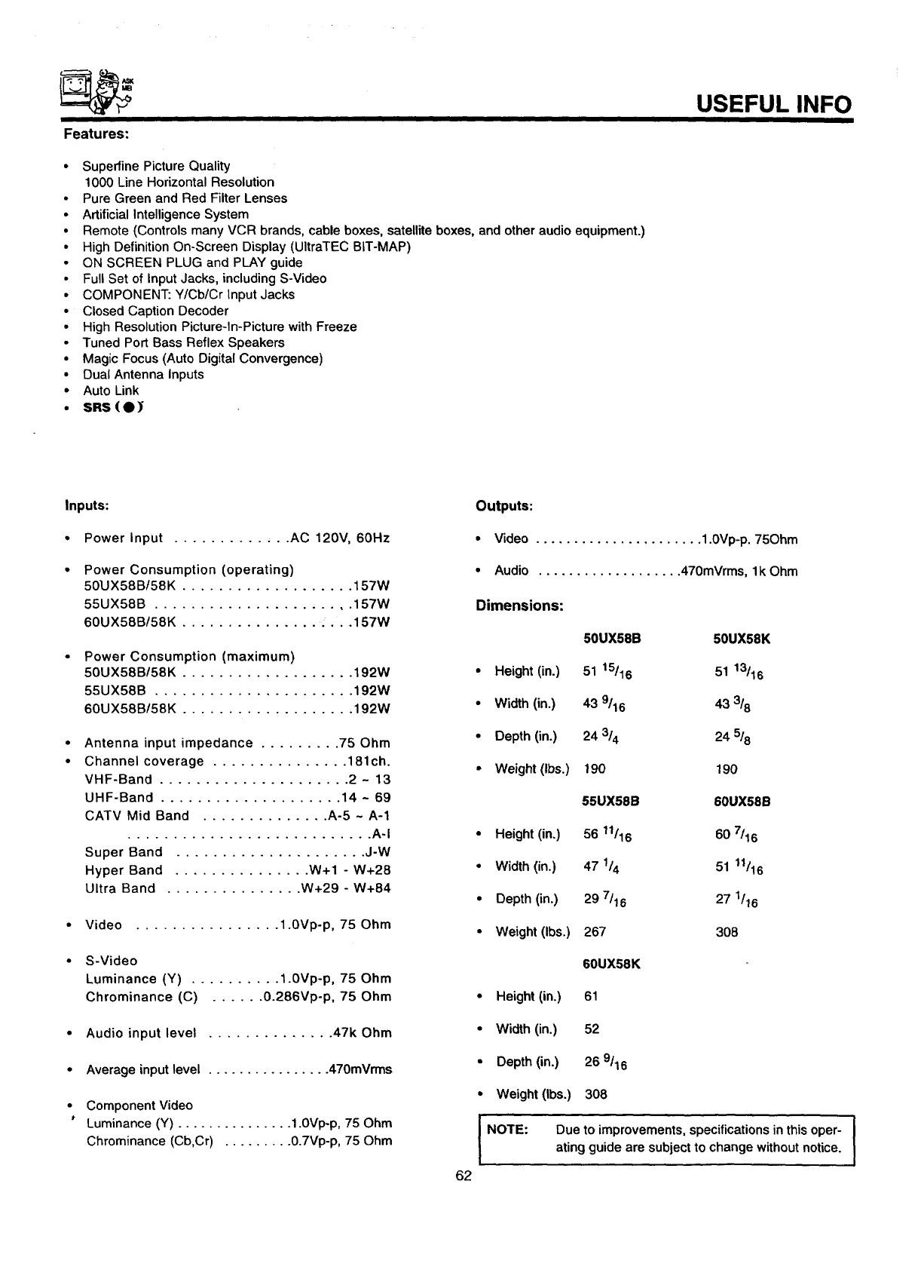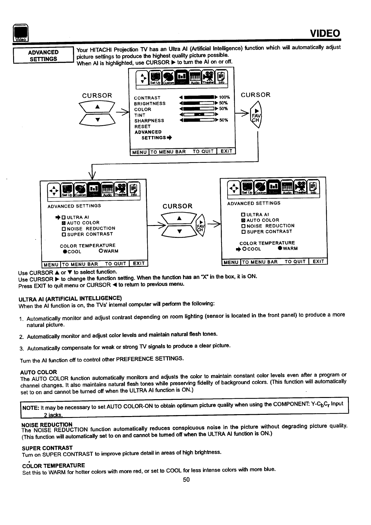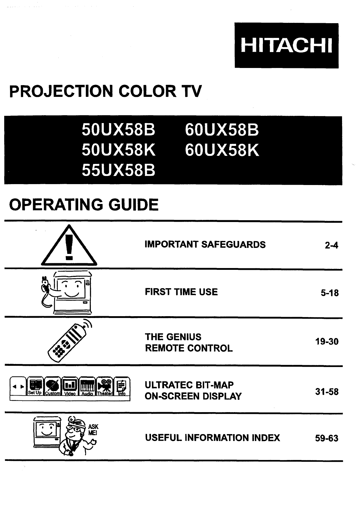 Hitachi 50UX58K User Manual PTV Manuals And Guides 98090022