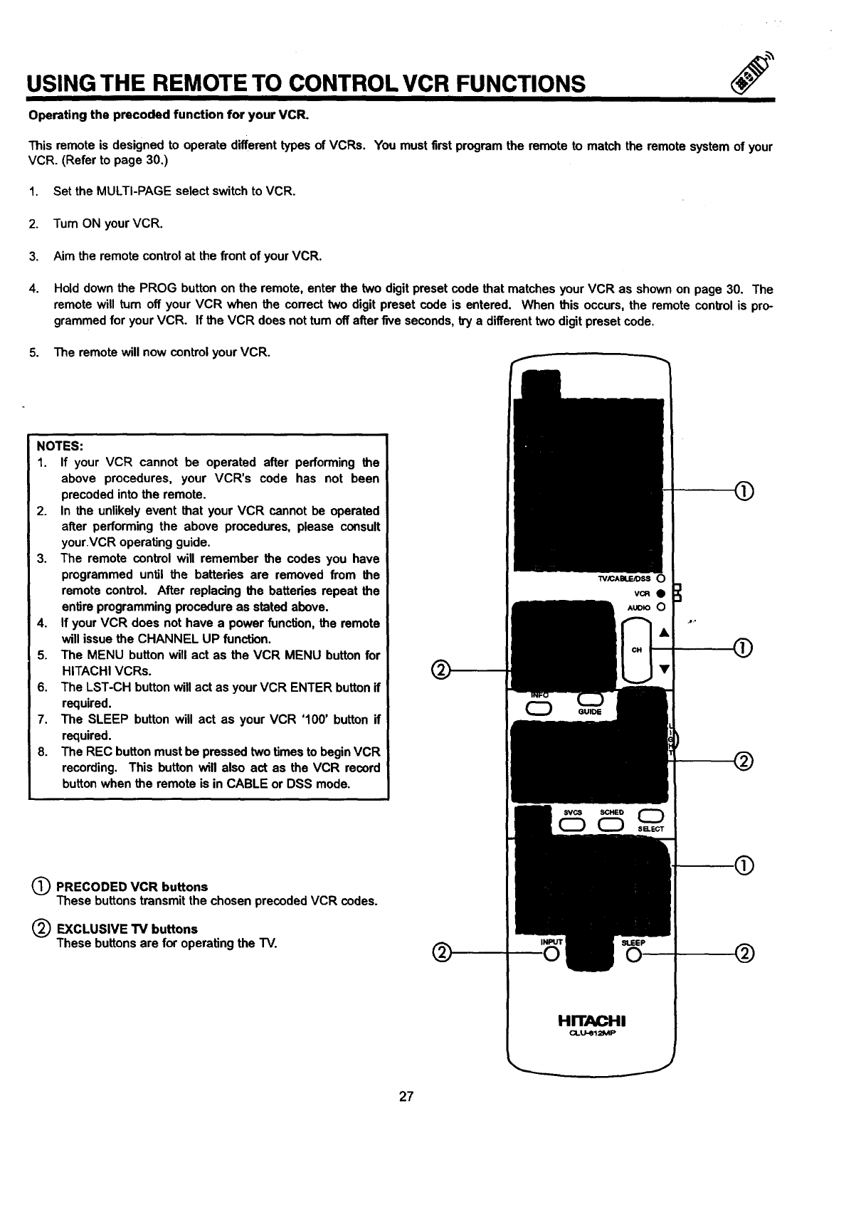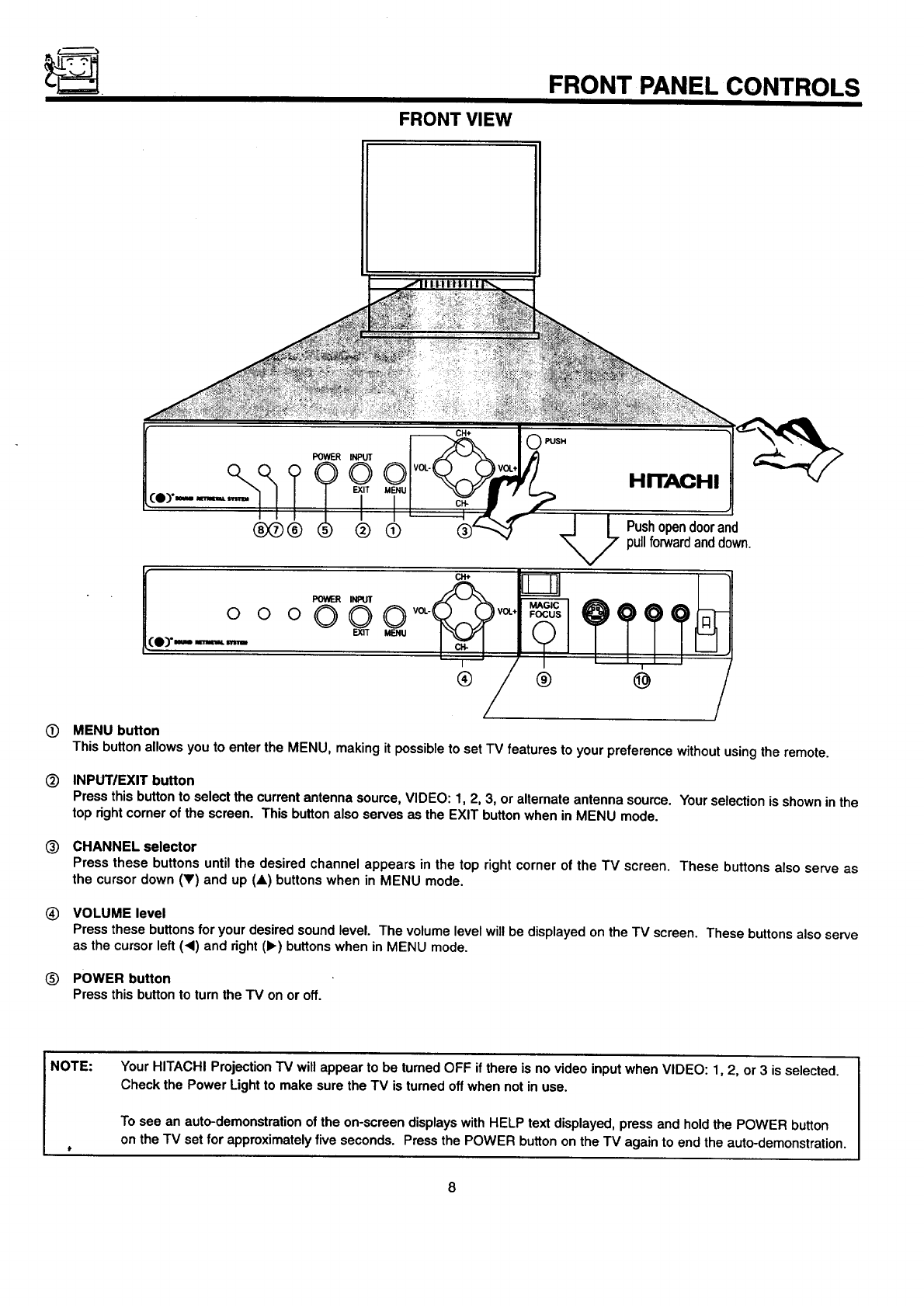 YOUR HITACHI PROJECTION TELEVISION