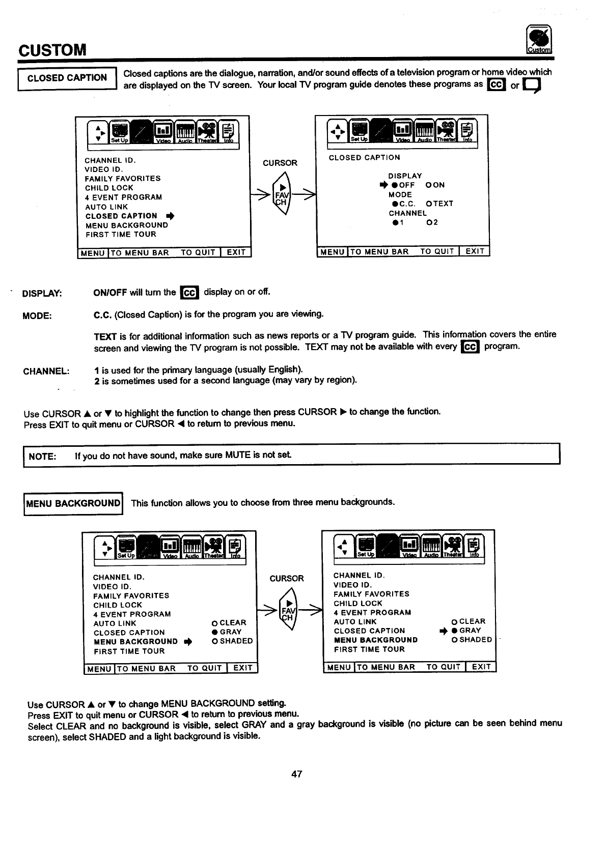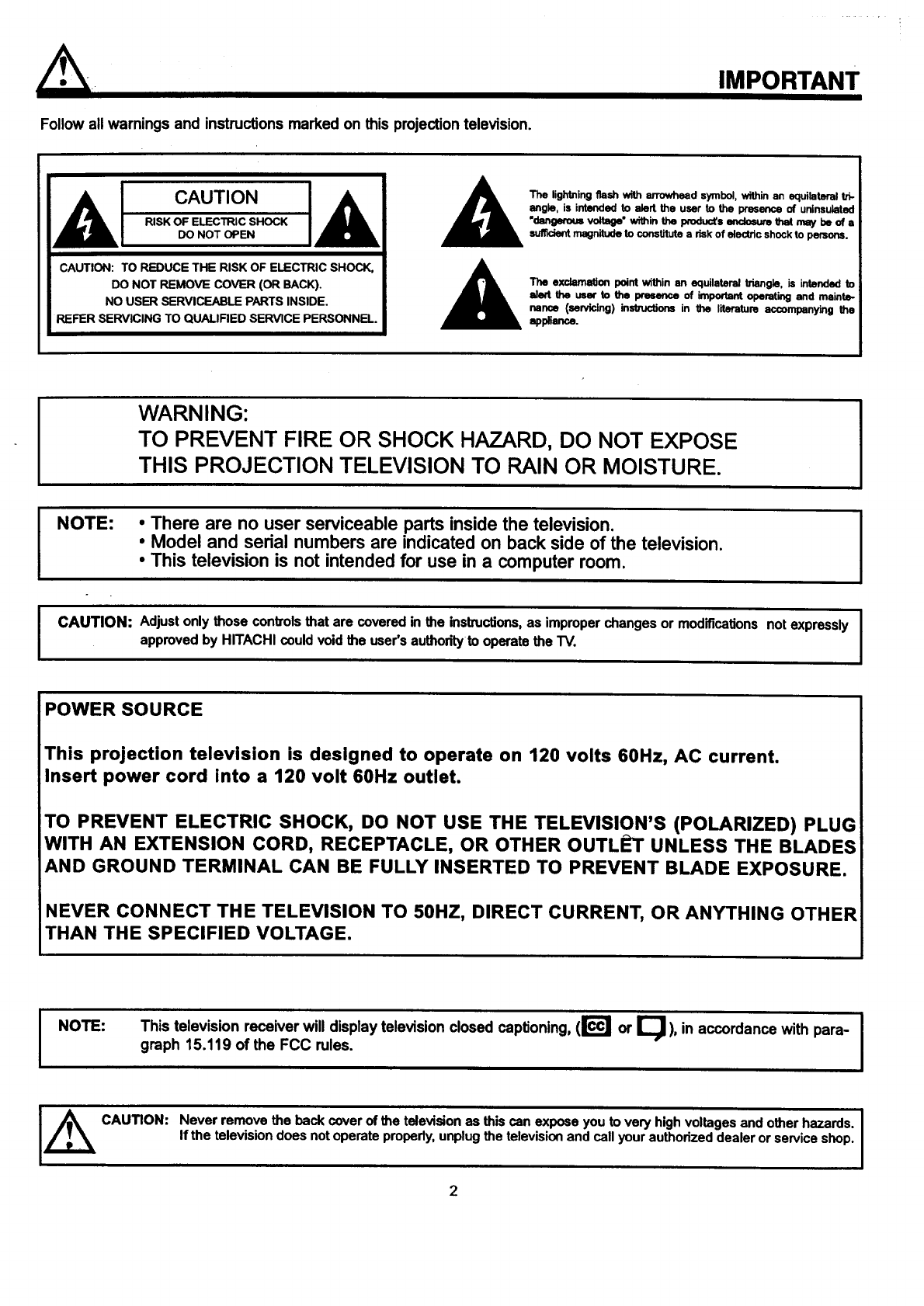 NOTE: This television receiver will display television closed captioning, (r_l or I_ ), in accordance with para- I