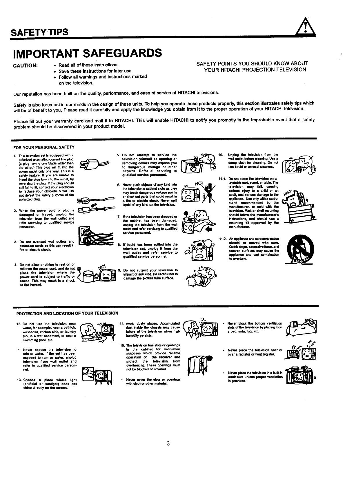 Please fill out your warranty card and mail it to HITACHI. This will enable HITACHI to notify you promptly in the improbable event that a safety